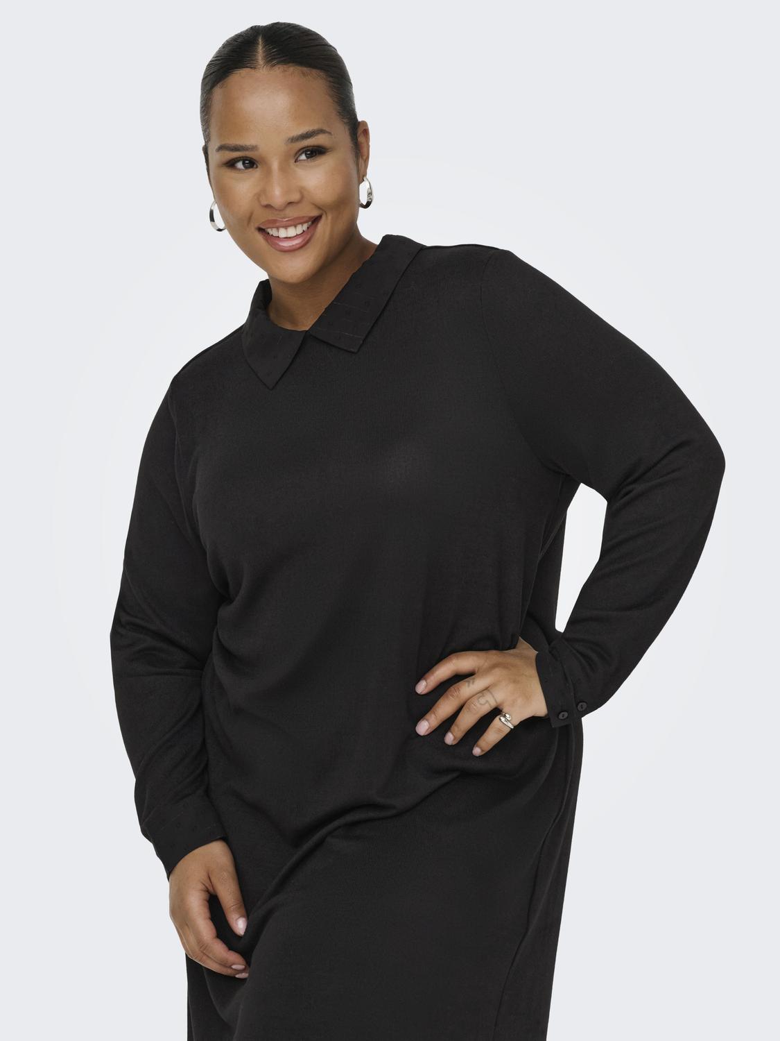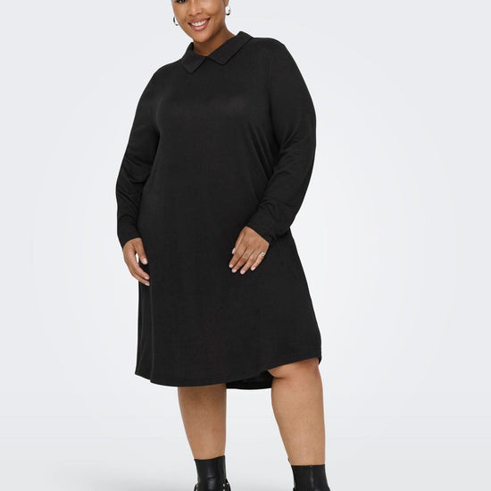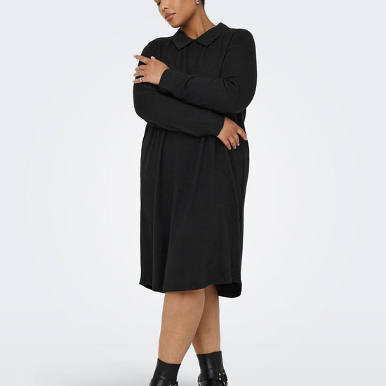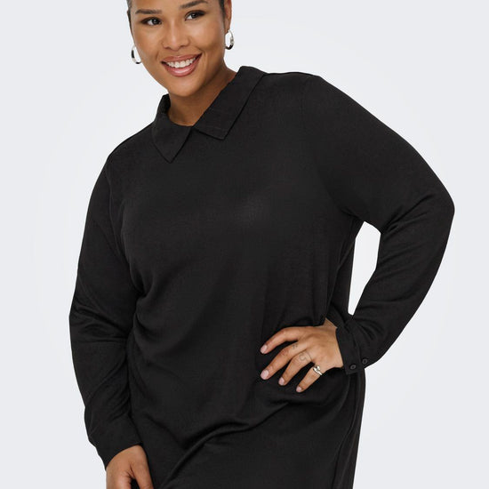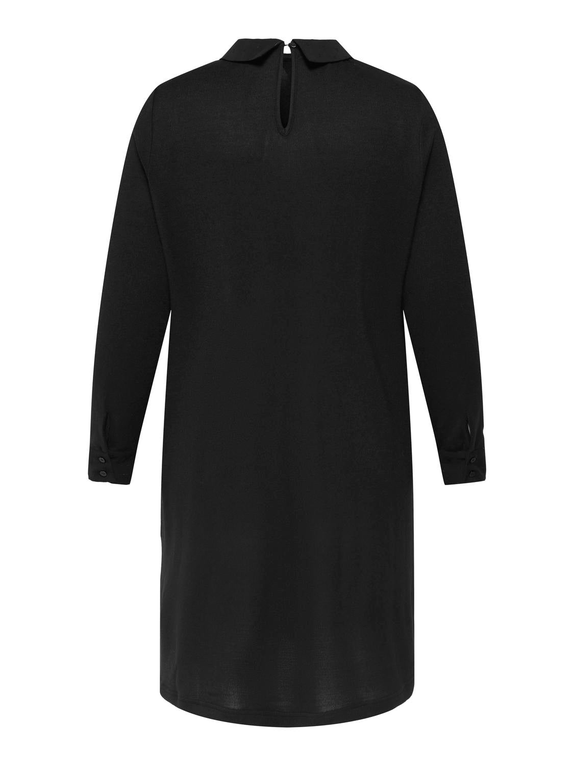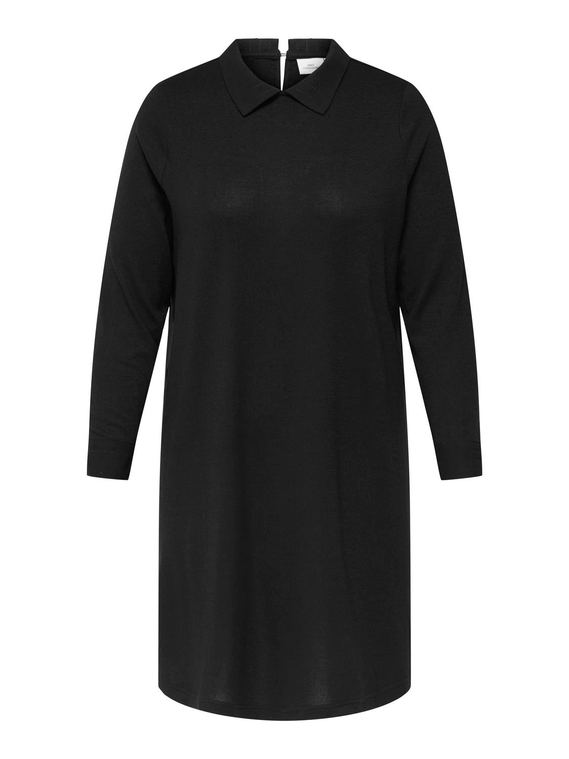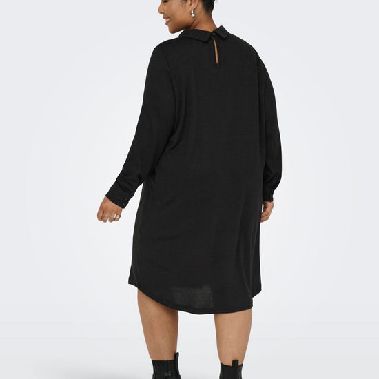 Den sorte kjole fra ONLY CARMAKOMA kombinerer tidløs stil med behagelig pasform. Med sit afslappede A-snit, klassiske krave og lange ærmer er kjolen ideel til både hverdag og festlige lejligheder. Materialet er blødt og elastisk, hvilket sikrer et flot fald og god bevægelsesfrihed.
