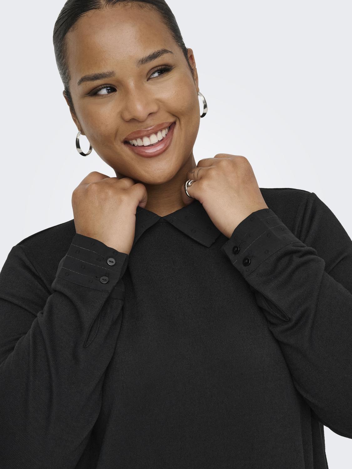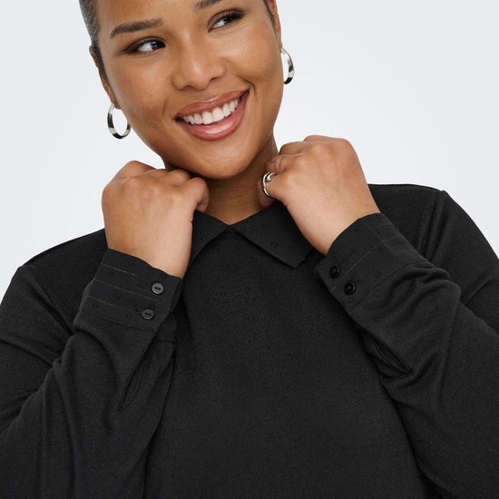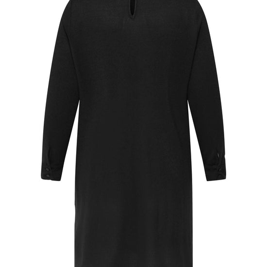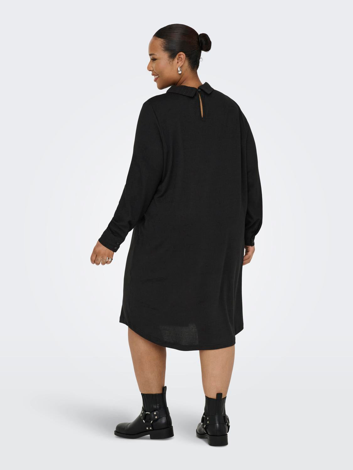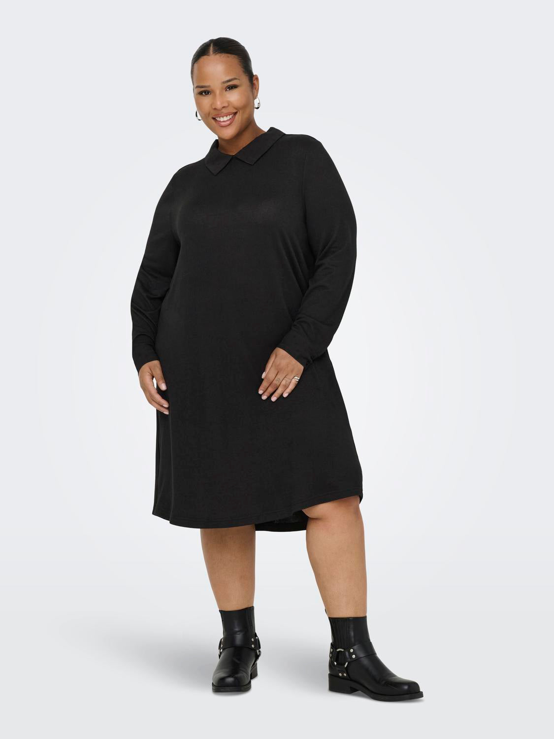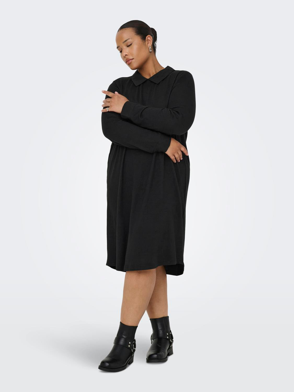 Den sorte kjole fra ONLY CARMAKOMA kombinerer tidløs stil med behagelig pasform. Med sit afslappede A-snit, klassiske krave og lange ærmer er kjolen ideel til både hverdag og festlige lejligheder. Materialet er blødt og elastisk, hvilket sikrer et flot fald og god bevægelsesfrihed.
