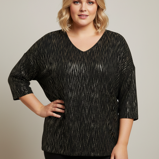 CarFoila - V-hals bluse med Guld Folie