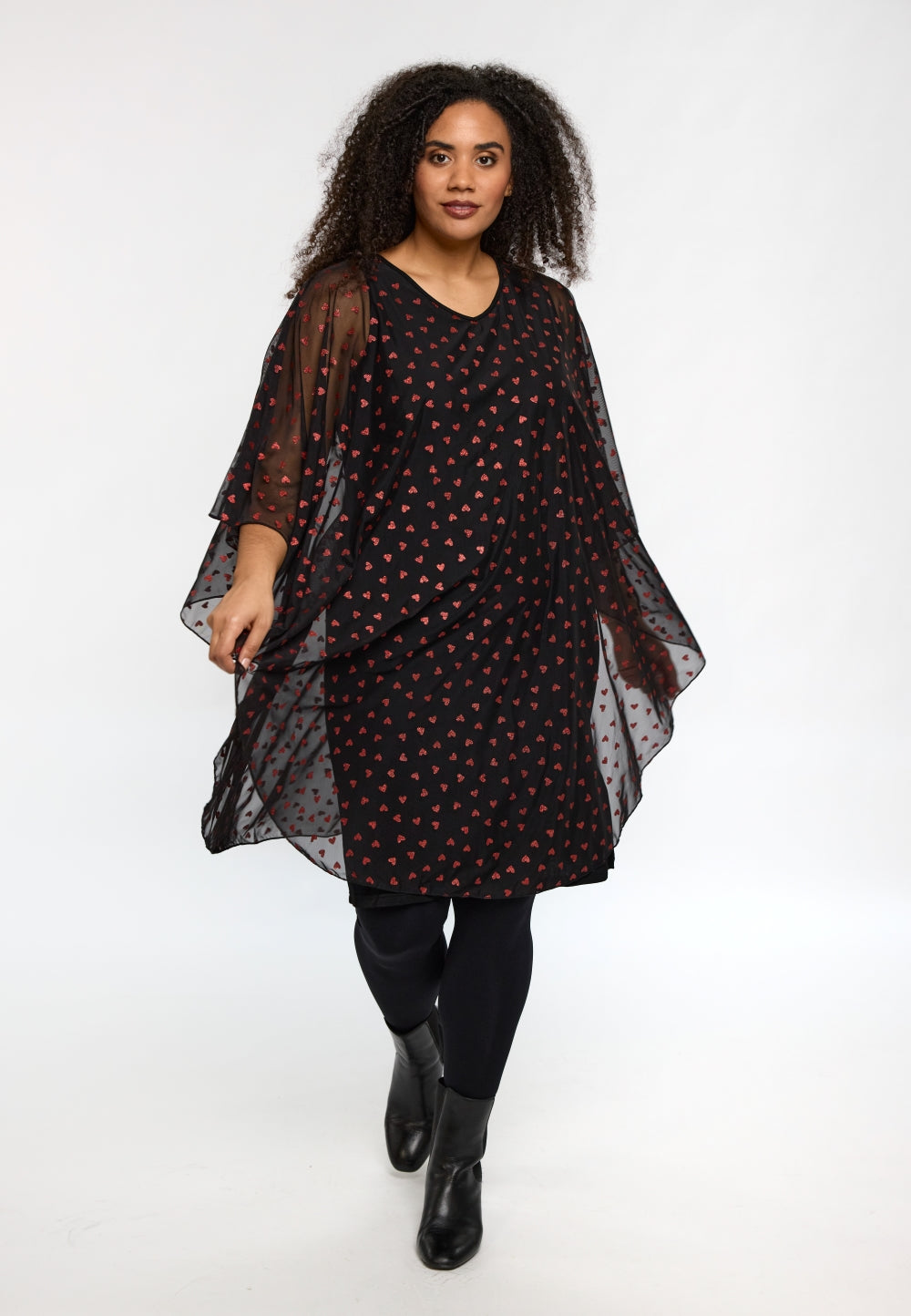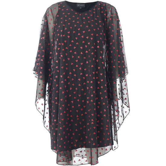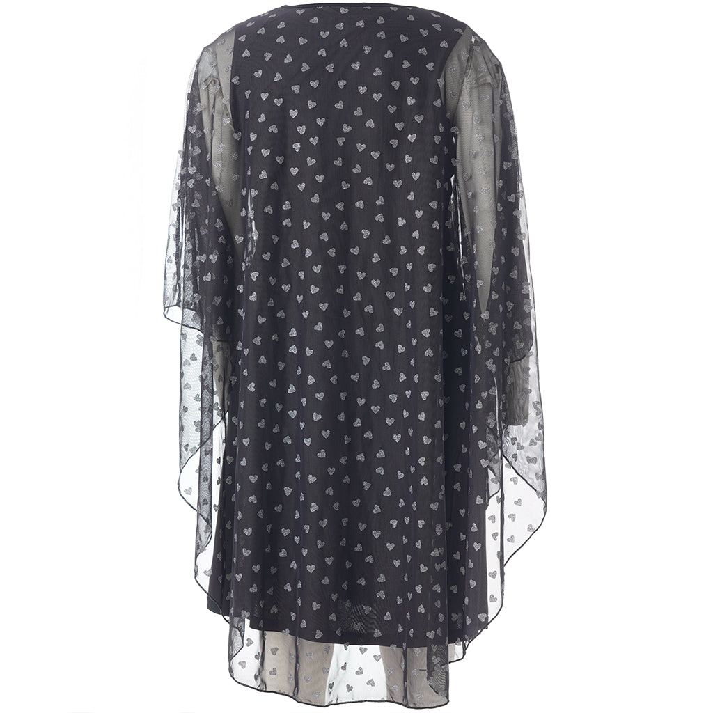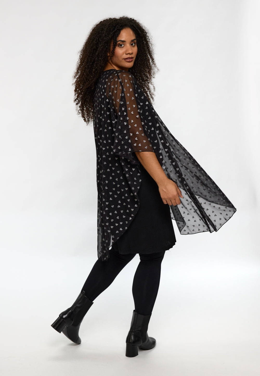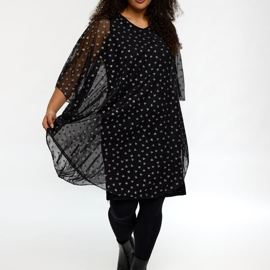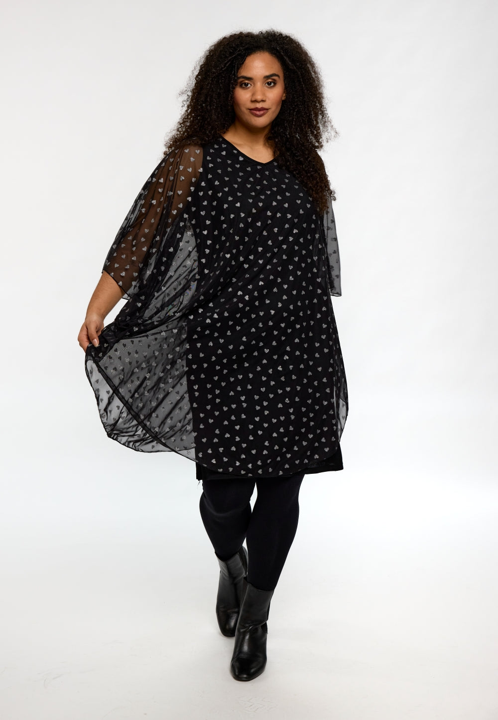 Gør dig klar til at stråle med denne elegante kjole fra Studio, der kombinerer komfort og feminint design. Kjolen har et smukt, sort ydre lag i gennemsigtigt mesh dekoreret med fine hjerter, samt en blød og tætsiddende underkjole. Den figursyede pasform med let stræk fremhæver dine former, mens det forede design sikrer ekstra komfort og et flot fald. Perfekt til både hverdag og festlige lejligheder.