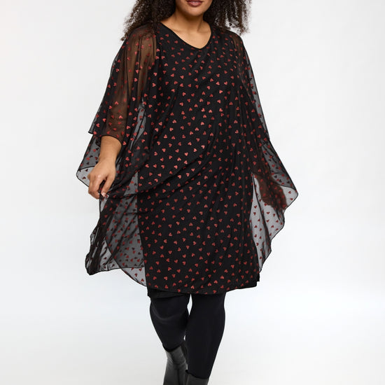 - To-lags design: Mesh med hjerteprint og blød underkjole