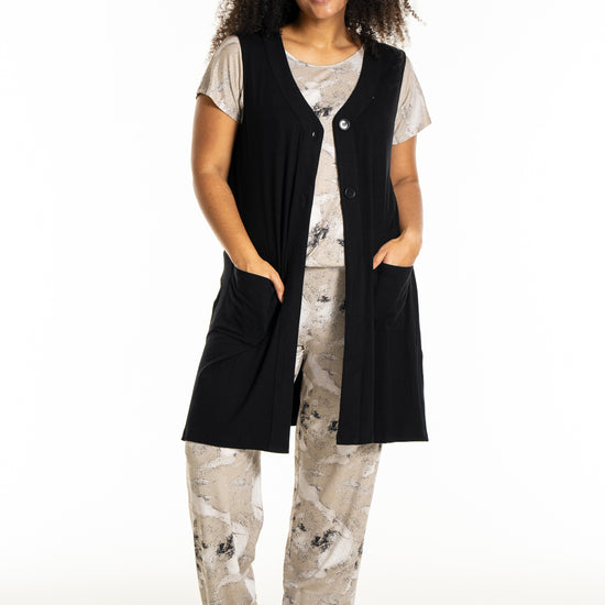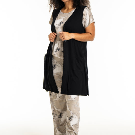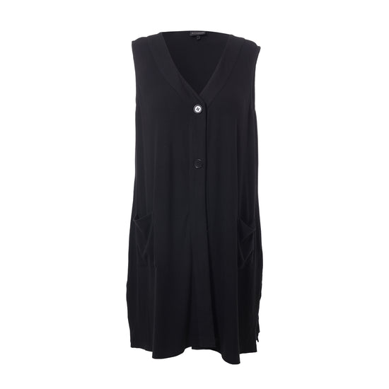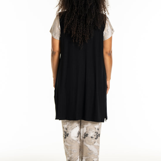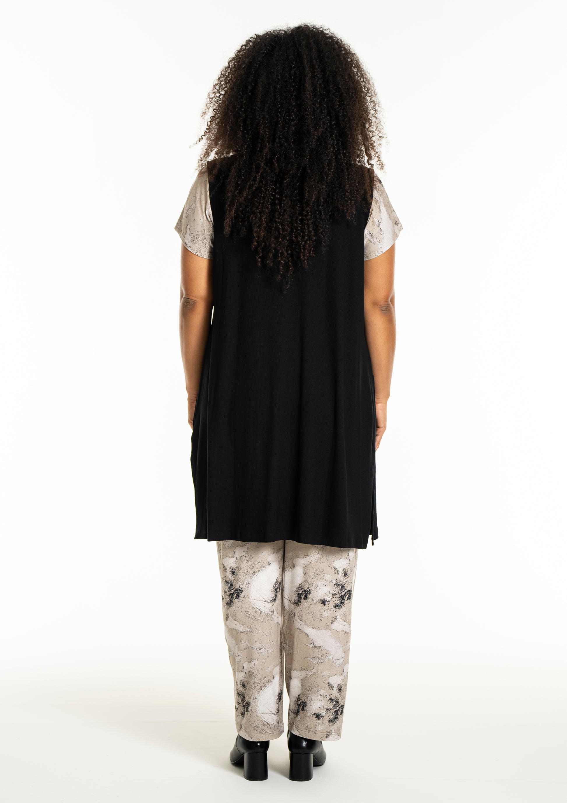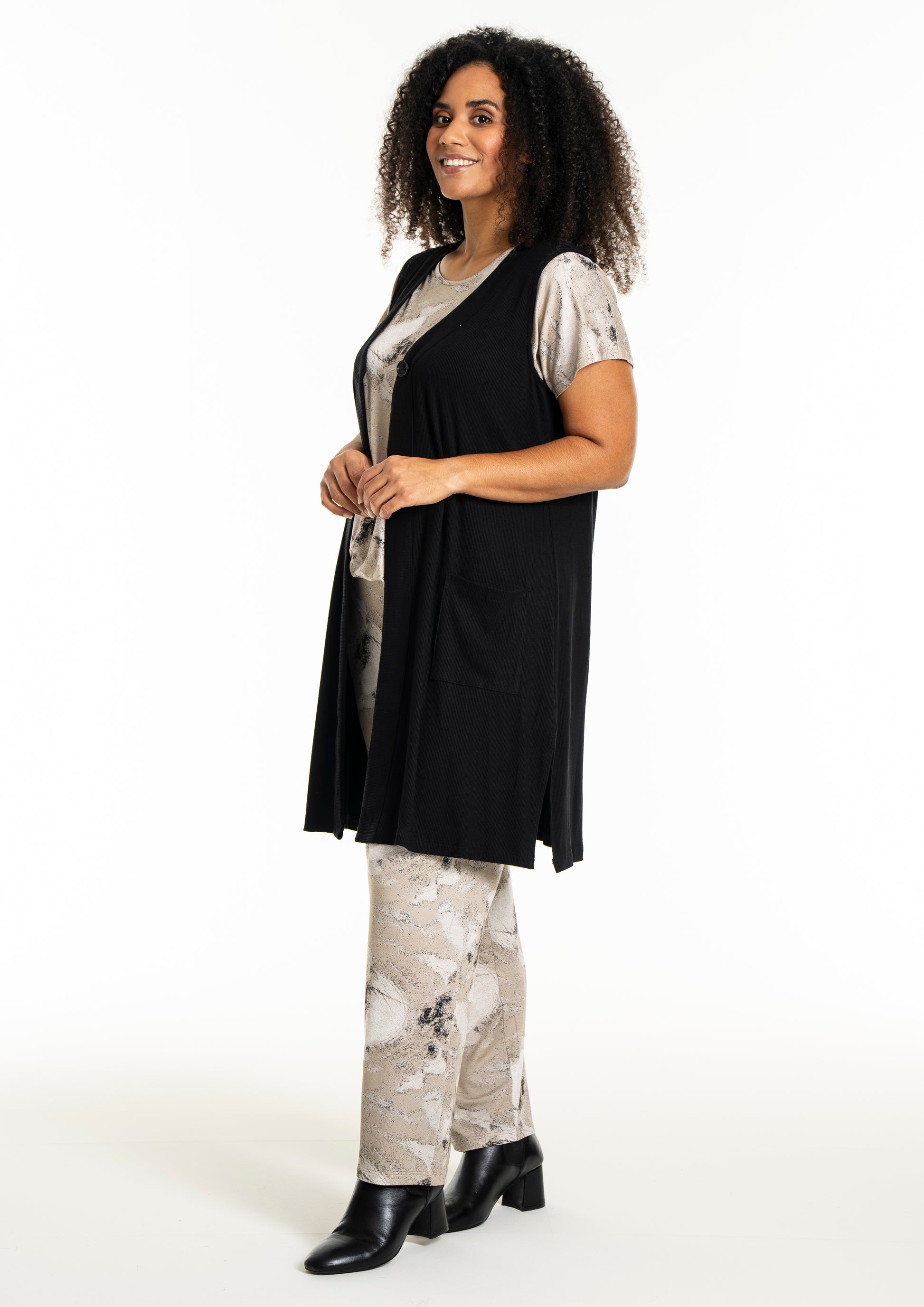 Den lange og elegante stil af denne vest giver en forlængende effekt til din silhouet, mens de praktiske lommer foran tilføjer funktionalitet. Den er ideel til lag-på-lag styling, hvilket gør den til en alsidig tilføjelse til din garderobe. Oplev mere af vores udvalg af veste og overtøj for at finde den perfekte kombination til din stil.