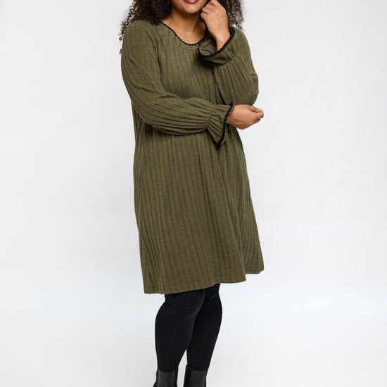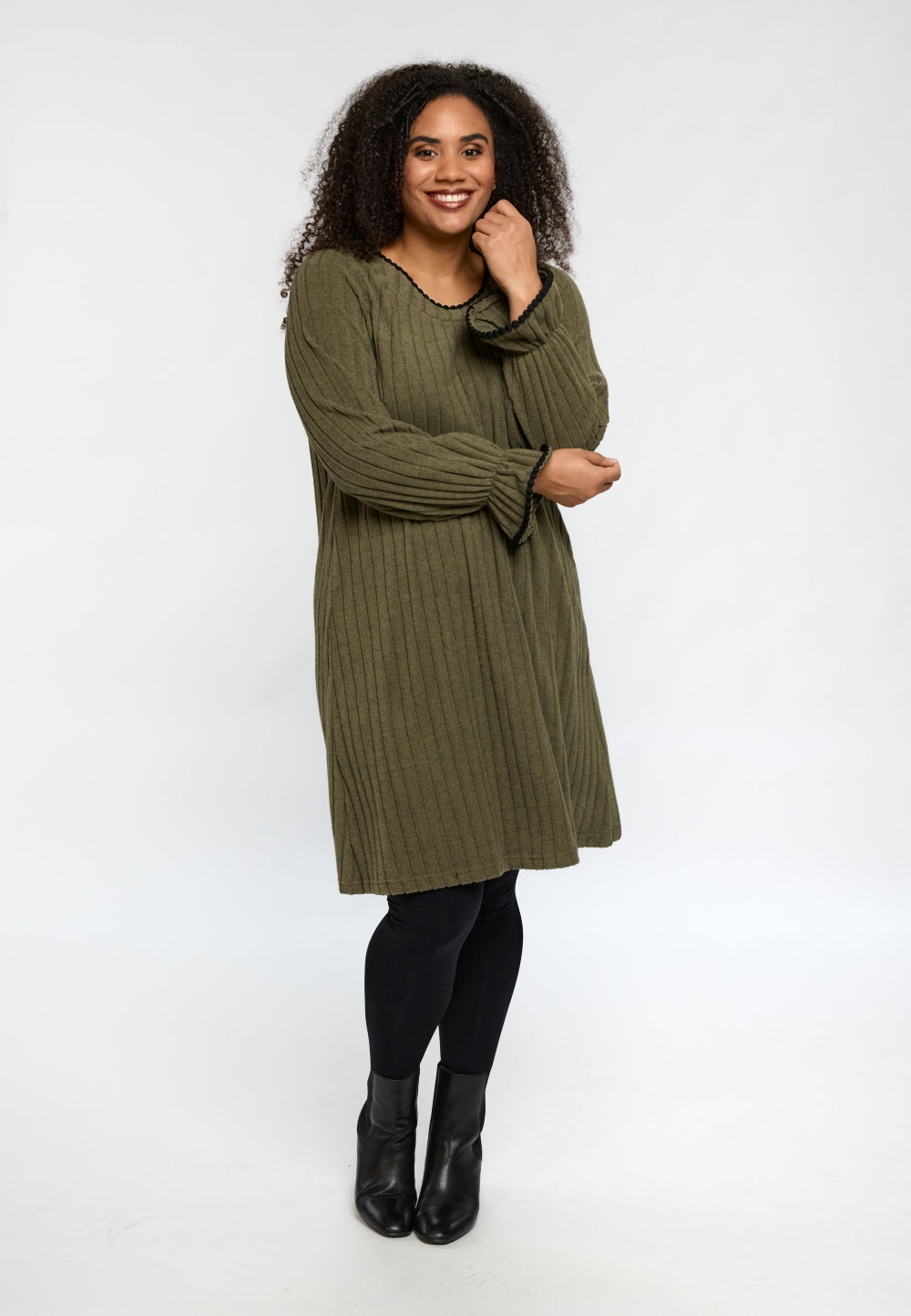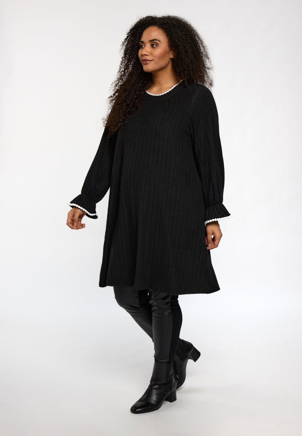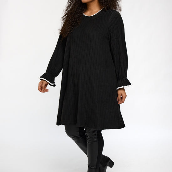 Oplev en blød og behagelig kjole fra Studio, designet i rib jersey kvalitet. Den løse pasform og de diskrete ribstriber giver et moderne, afslappet udtryk, så du nemt kan føle dig godt tilpas hele dagen.