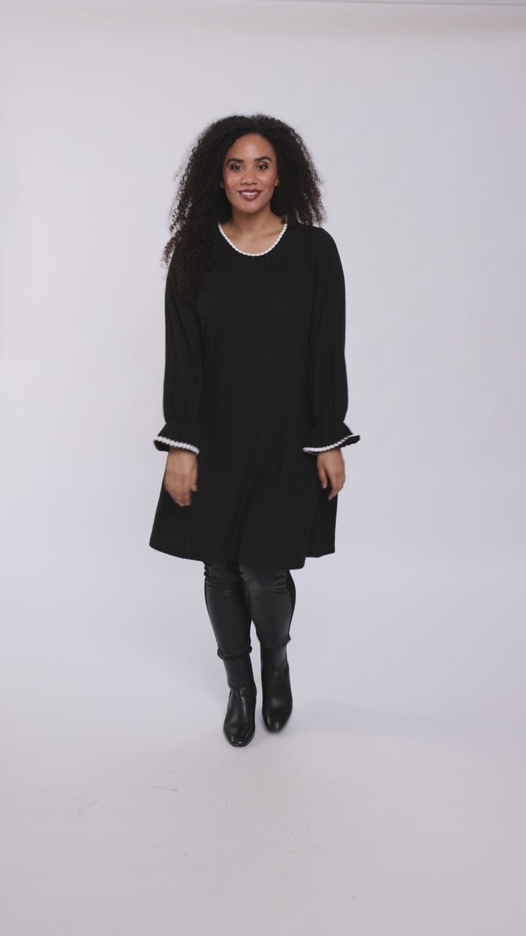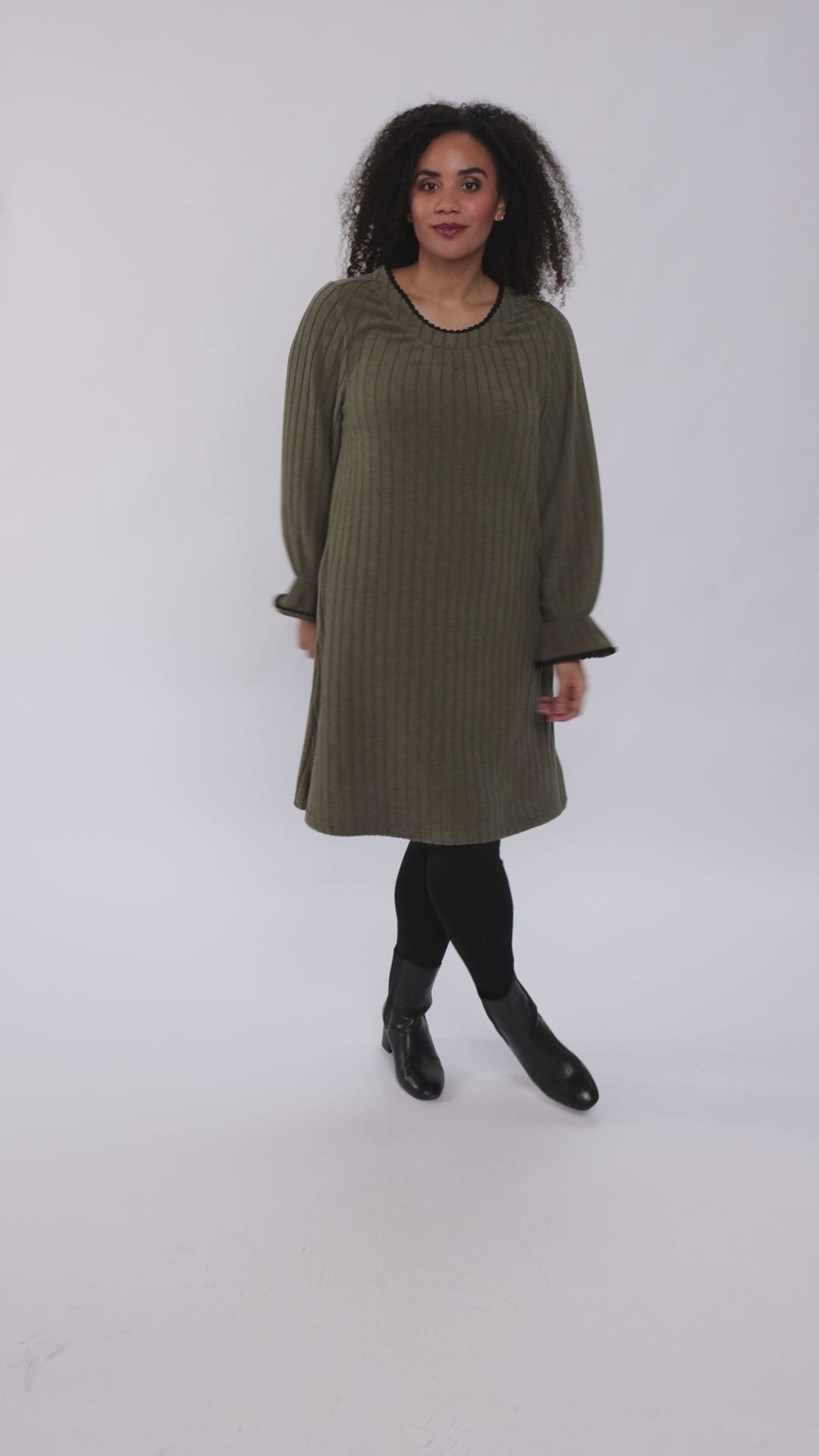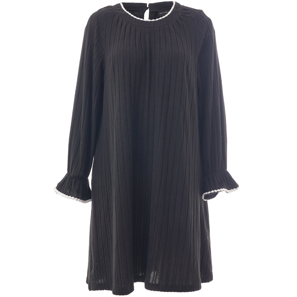 Oplev en blød og behagelig kjole fra Studio, designet i rib jersey kvalitet. Den løse pasform og de diskrete ribstriber giver et moderne, afslappet udtryk, så du nemt kan føle dig godt tilpas hele dagen.