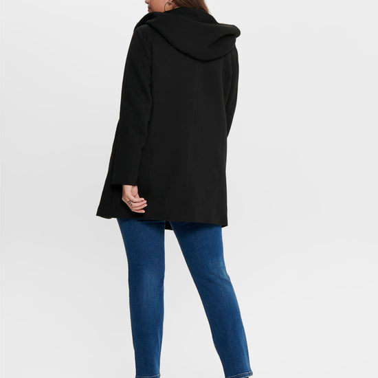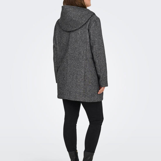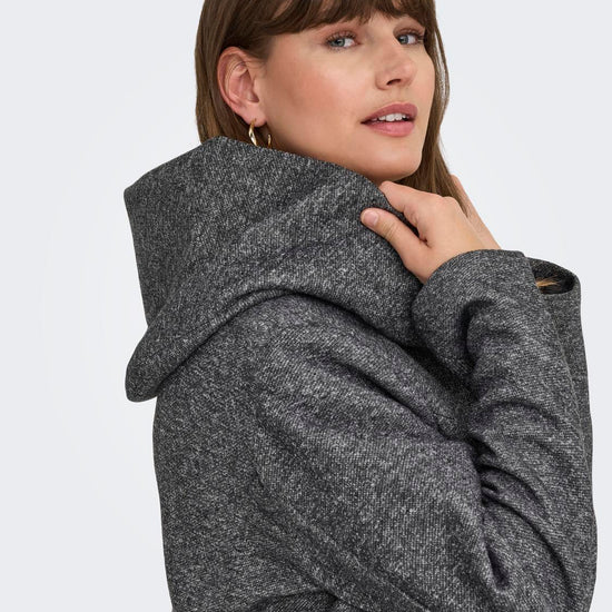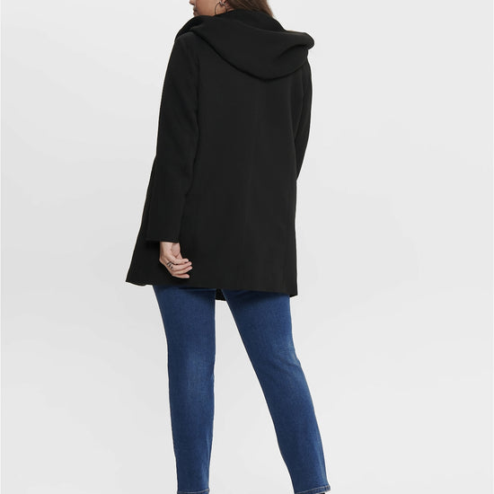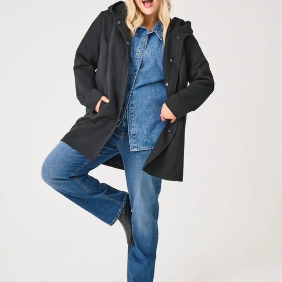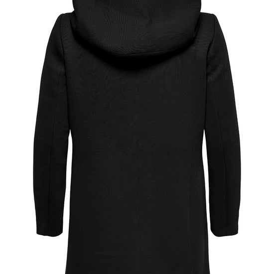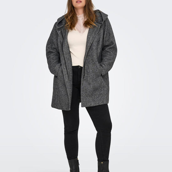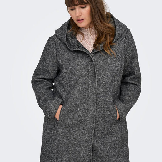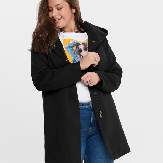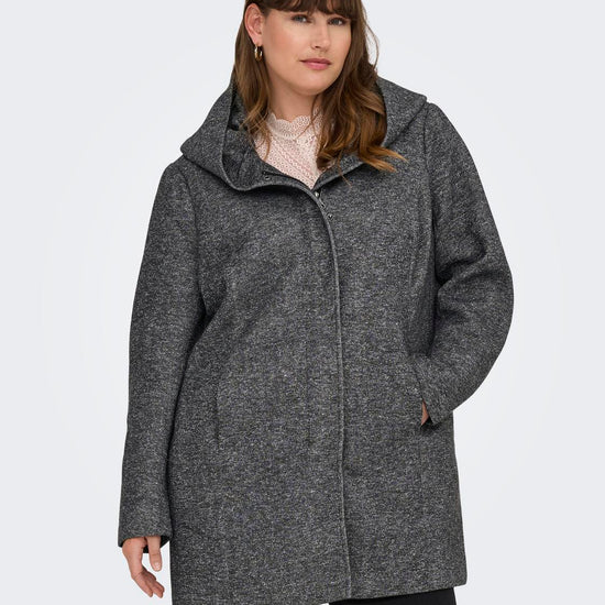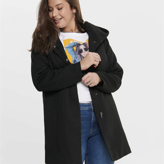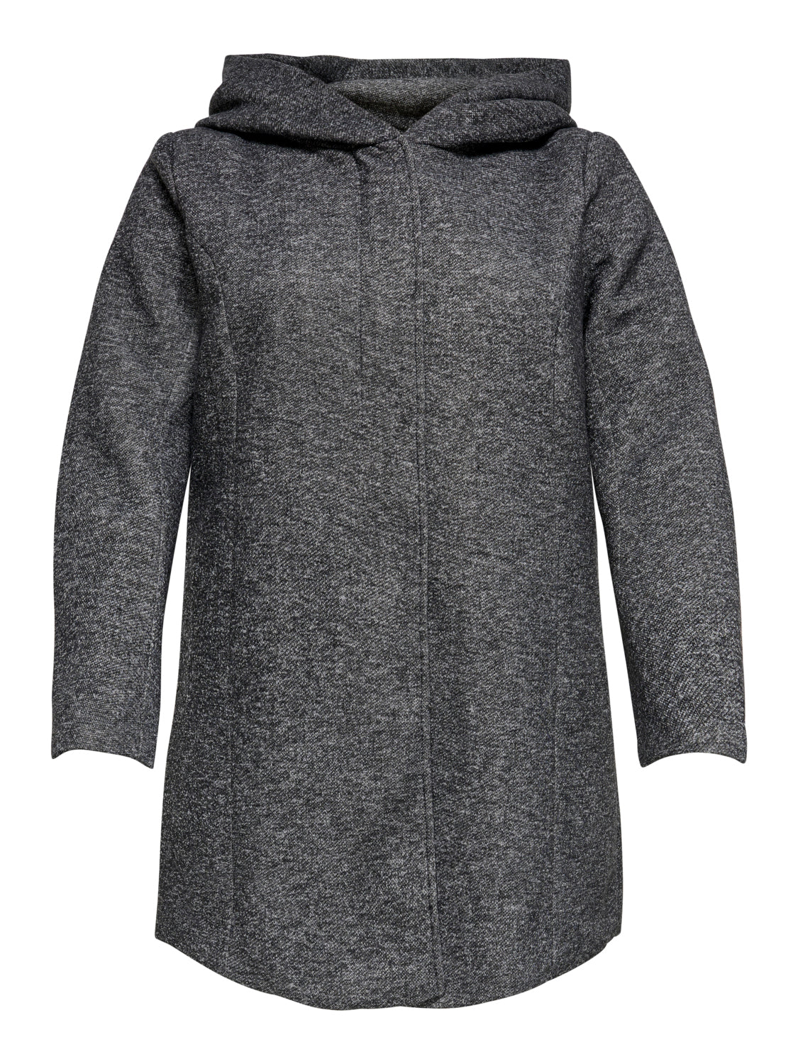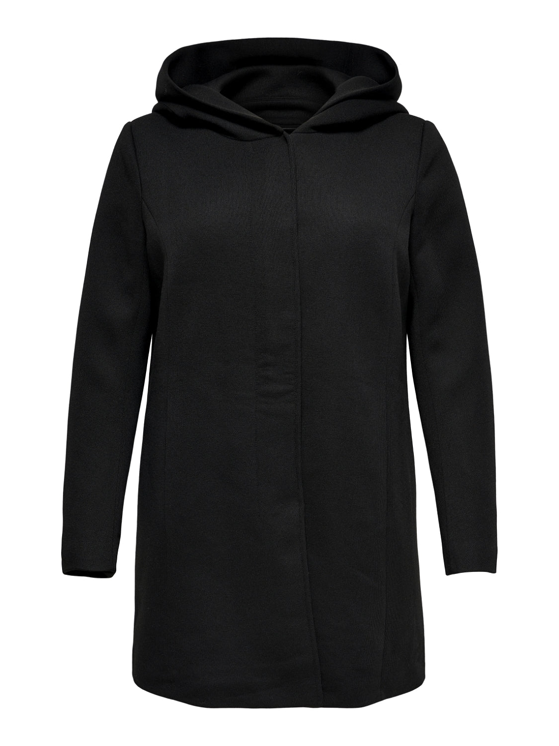 Frakke med skjult lynlås og knaplukning foran. Prinsessesnit foran og bagpå. 2 sidelommer.