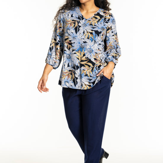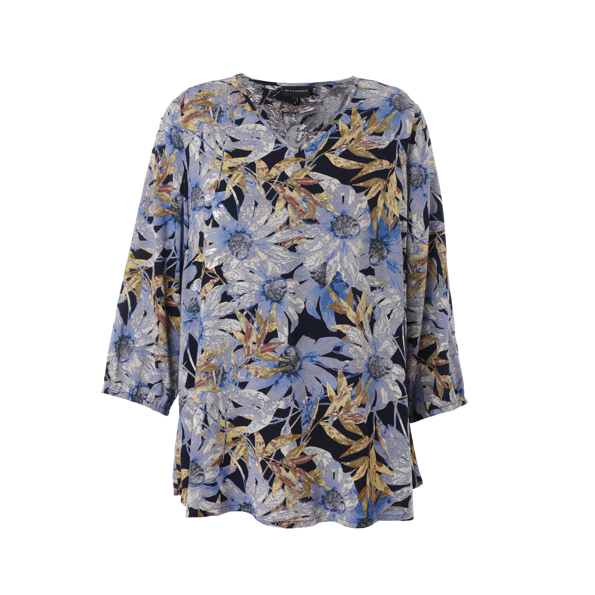 Oplev den smukke bluse fra Studio, der kombinerer stil og komfort på bedste vis. Denne bluse er lavet af 100% viskose, hvilket sikrer en let og behagelig følelse. Med et flatterende A-snit og en elegant V-halsudskæring fremhæver blusen dine naturlige kurver på en subtil måde. De løse 7/8-ærmer afsluttes med en tynd elastisk kant, der tilføjer en ekstra detalje til det samlede look.