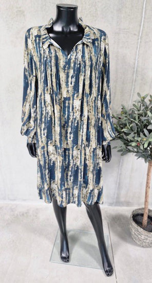 Opnå en elegant og komfortabel stil med denne smukke kjole fra Vanting, designet i 100% crepe viskose for en let og luftigt følelse. Kjolen er skabt med sans for detaljer og har lange ærmer med smock elastik, der sikrer en behagelig pasform og en moderne silhuet.