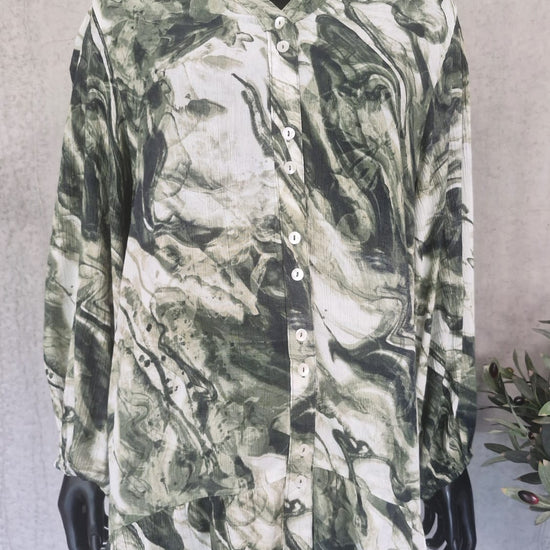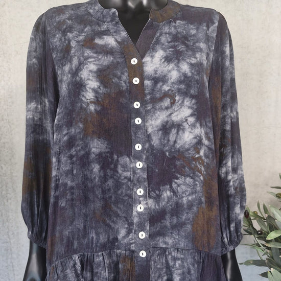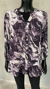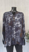 Opdag den stilfulde skjortebluse fra Vanting, der kombinerer moderne design med komfort. Denne bluse er lavet af 100% crepe viskose, hvilket sikrer et let og åndbart materiale, der føles fantastisk mod huden. Den unikke tie-dye effekt i nuancer af grå, grøn og lilla giver blusen et kunstnerisk udtryk, der med sikkerhed vil tiltrække opmærksomhed.