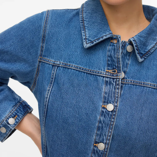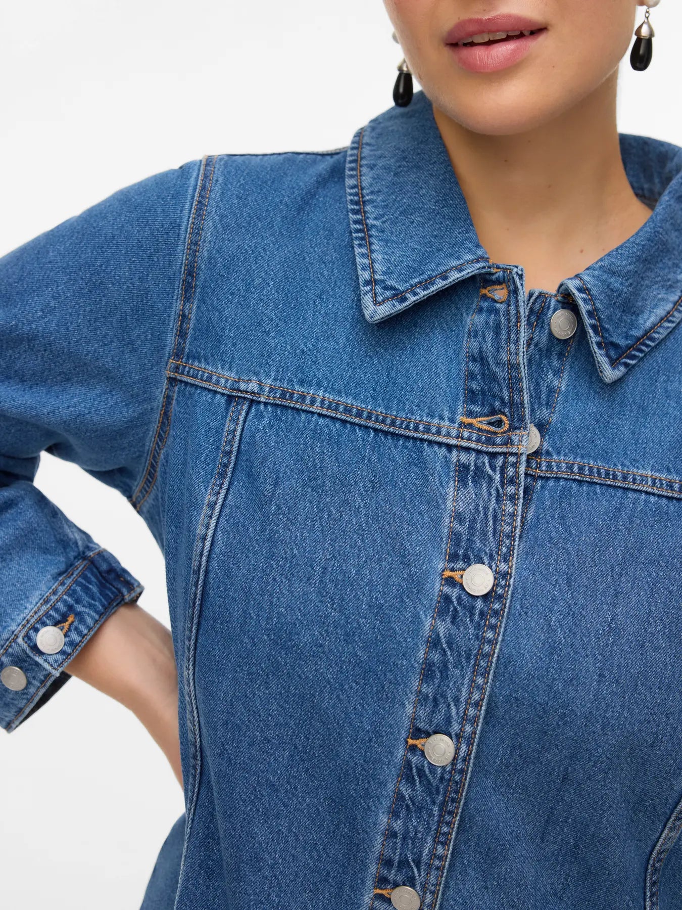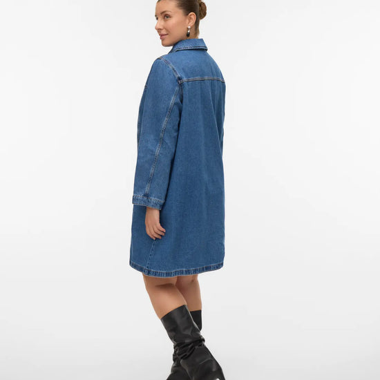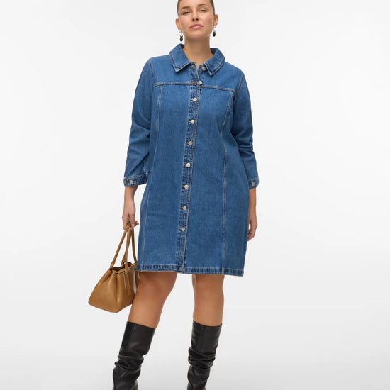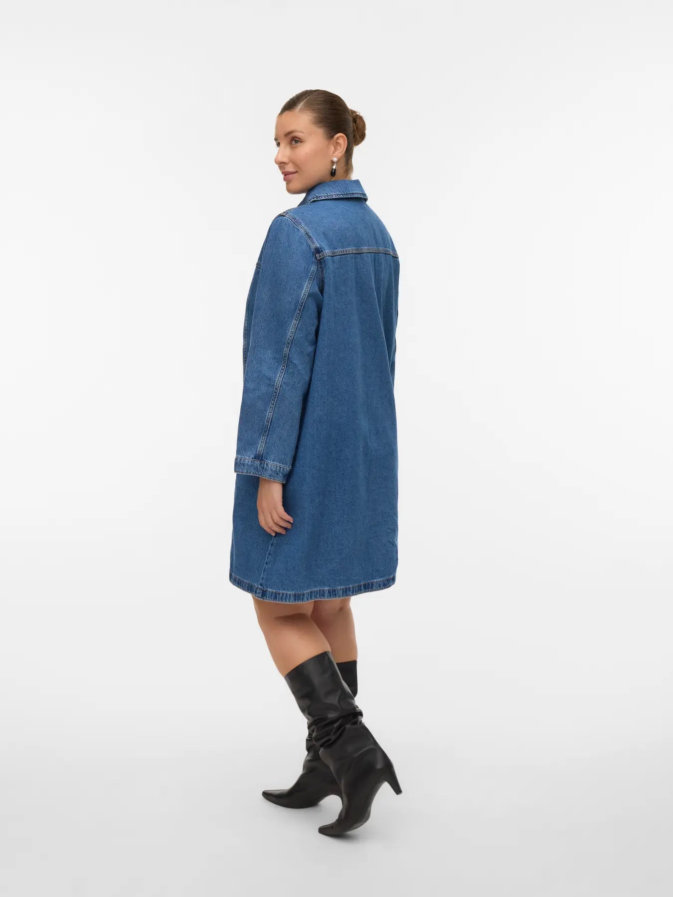 Style kjolen med en jakke eller fuldend looket med et par flotte sko. VMCFINDO LS SHORT DENIM DRESS VI352 CURVE kombinerer klassisk denim med komfort og en moderne silhuet.