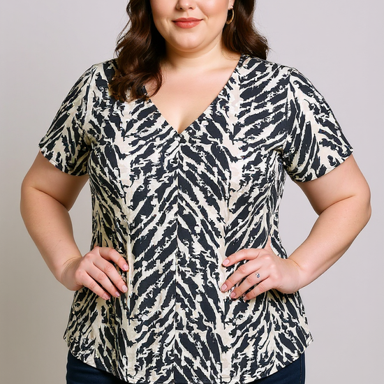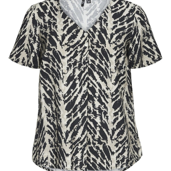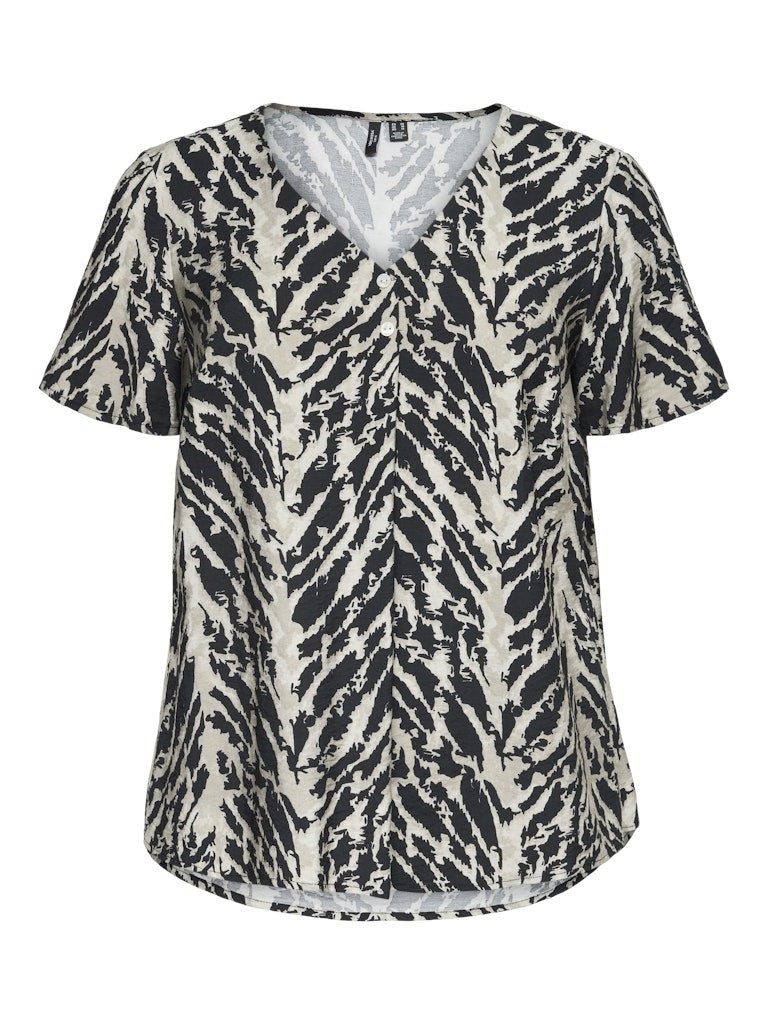 Opgrader din garderobe med denne sofistikerede bluse fra Vero Moda Curve. Designet specielt til kurvede kroppe, sikrer denne bluse en flatterende og komfortabel pasform. Med en elegant V-udskæring og korte ærmer, kombinerer den stil og funktionalitet perfekt. Det gentagne print på hele overfladen tilføjer et moderne touch, der gør den alsidig nok til både hverdag og fest.