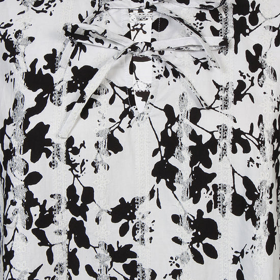 Blusen har et unikt design med løse ærmer og en rund halsudskæring, der kan justeres med et diskret bånd foran. Denne detalje tilføjer et stilfuldt touch og muliggør personlig tilpasning af udskæringen. Med dens alsidige pasform kan blusen nemt styles med forskellige jeans eller nederdele for et komplet look.