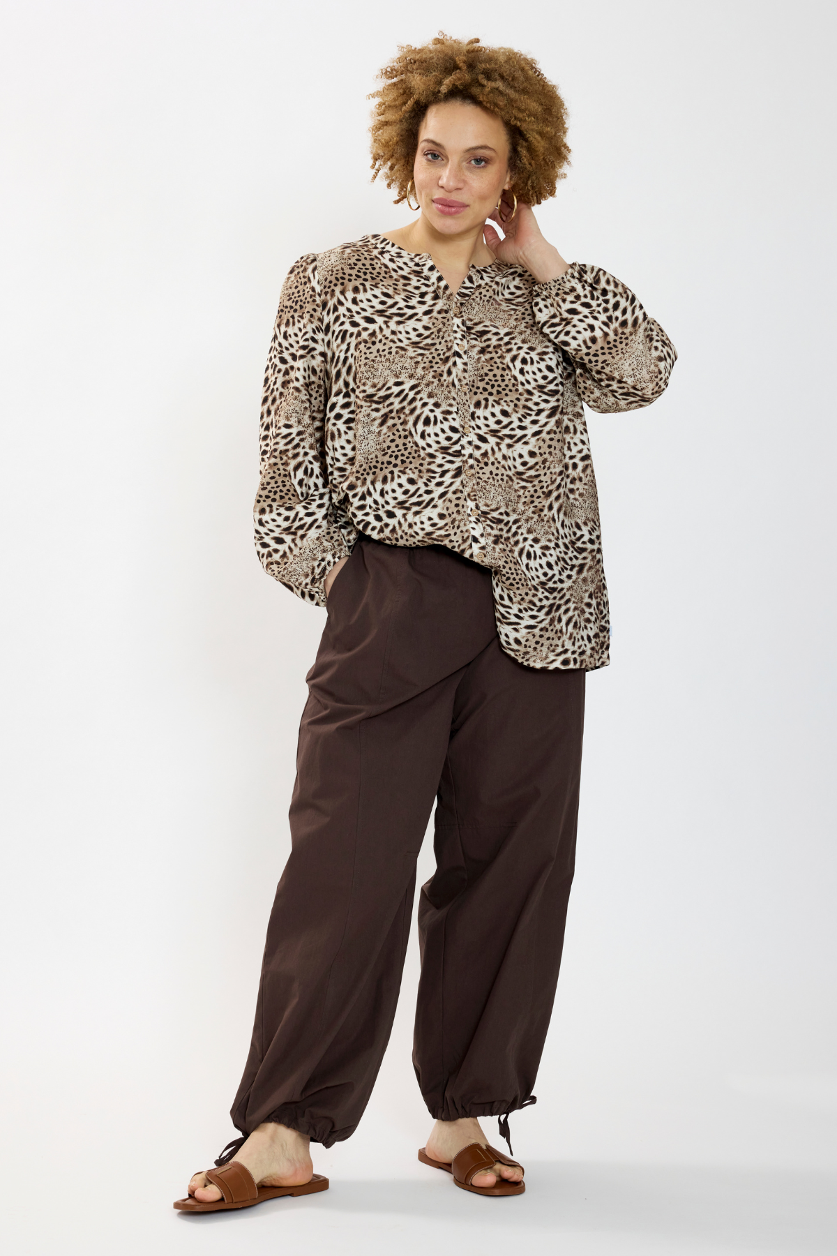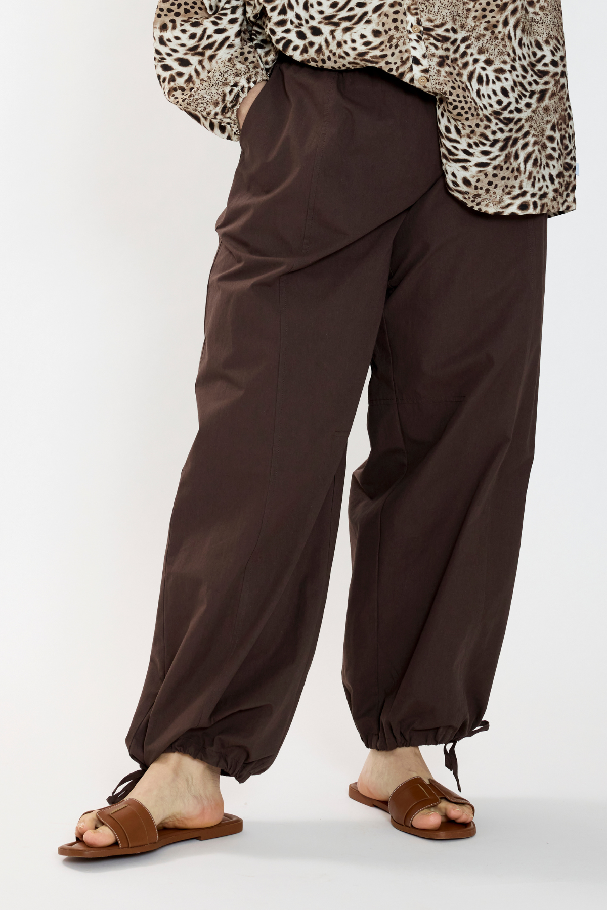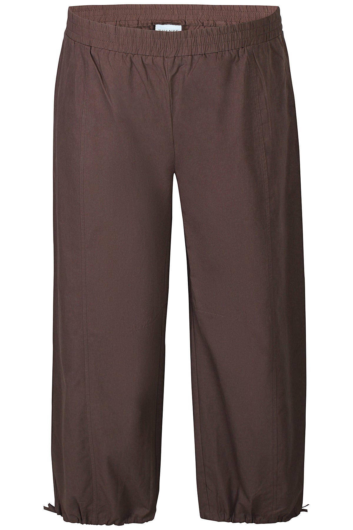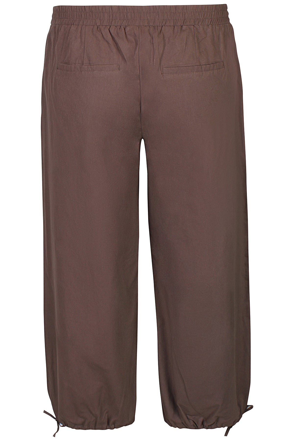 Den lette bomuld falder rigtig pænt og skaber en flot silhuet, der fremhæver det casual udtryk. Snøredetaljen nederst på buksebenet gør det muligt at stramme dem ind, så bukserne får et trendy og poset snit forneden. Du kan lade dig inspirere af billedet og sammensætte disse smarte zhenzi bukser med en let plus size skjorte for et dejligt boheme-inspireret sæt. Den varme brune nuance står også enormt godt til et par åbne sommersko eller en flad sandal.