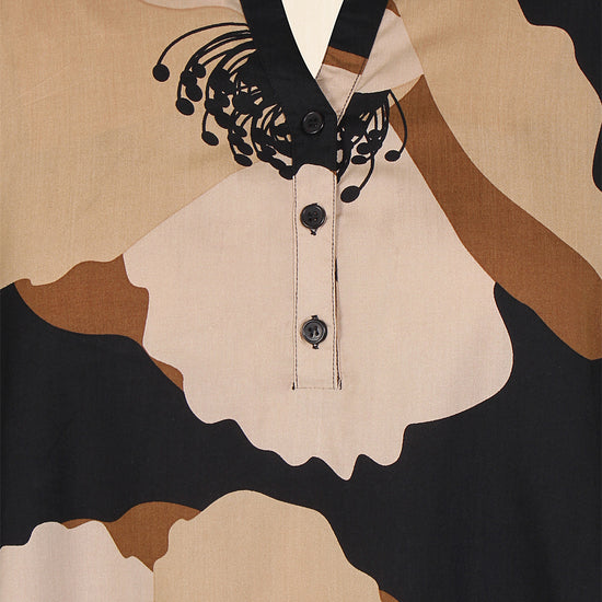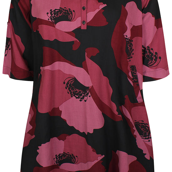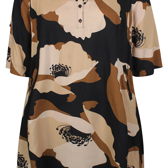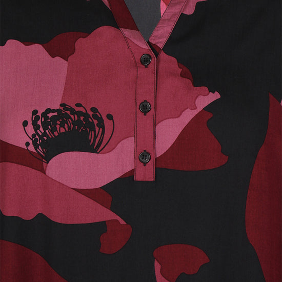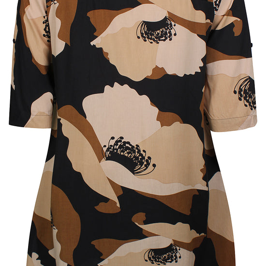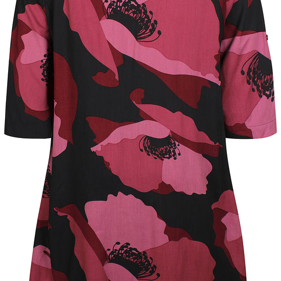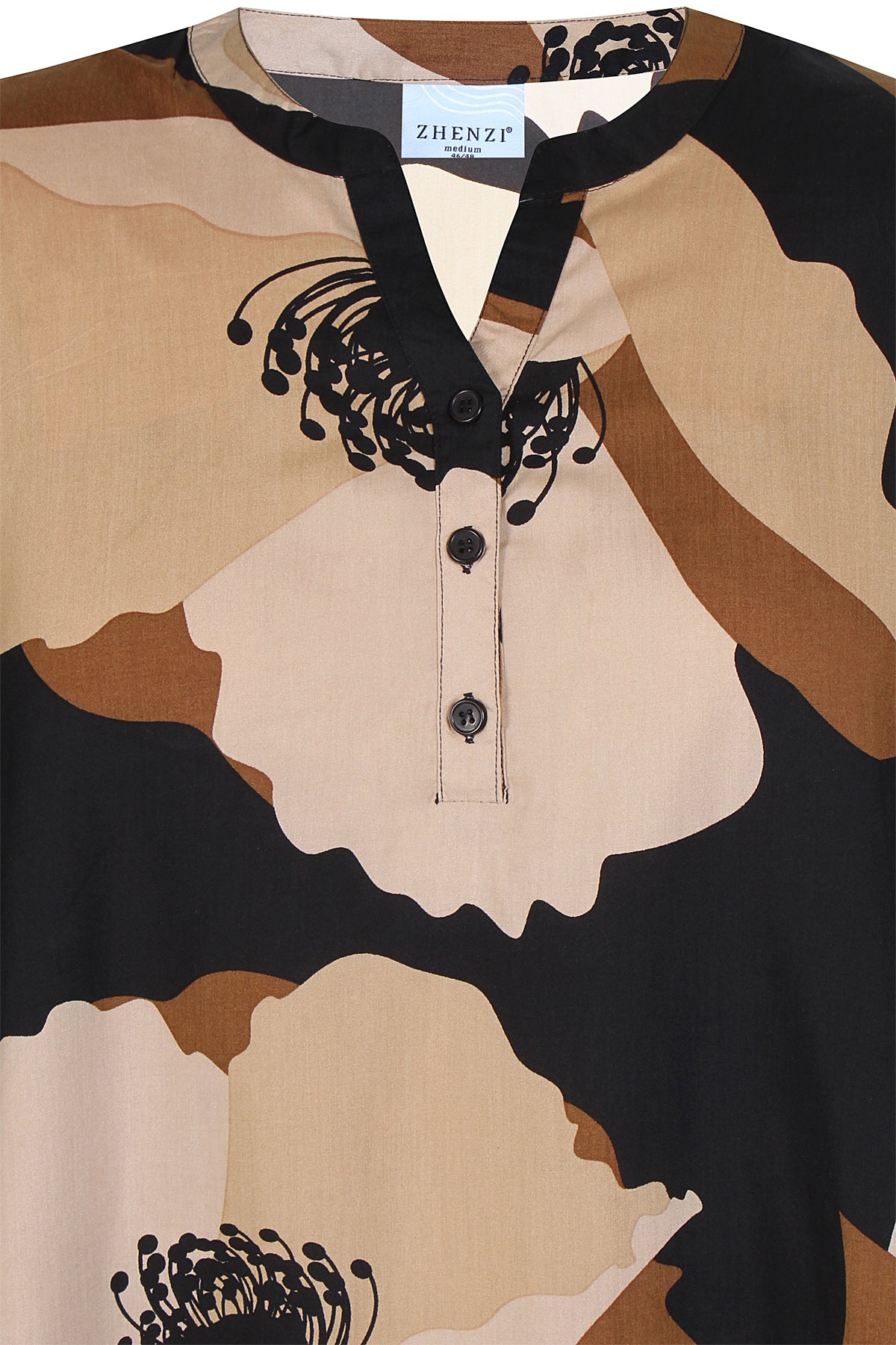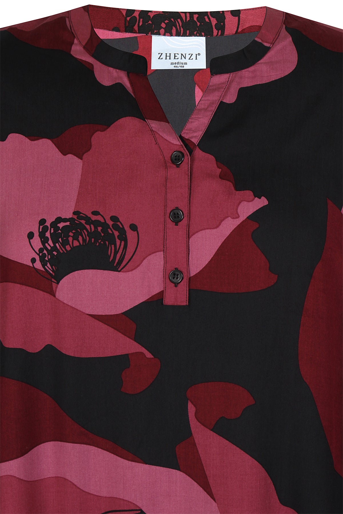 Giv din garderobe et løft med denne elegante kjole fra Zhenzi. Kjolen er fremstillet i 100% viskose, som sikrer en let og behagelig følelse hele dagen. Med sin løse pasform, knælange længde og trekvartlange ærmer får du en flatterende silhuet, der passer til alle former. Printet skiller sig ud med moderne blomster i portabella, maroon og sort, hvilket giver et unikt og trendy udtryk.