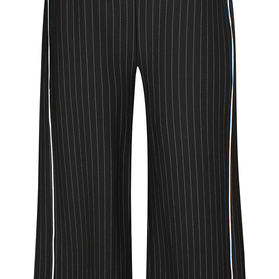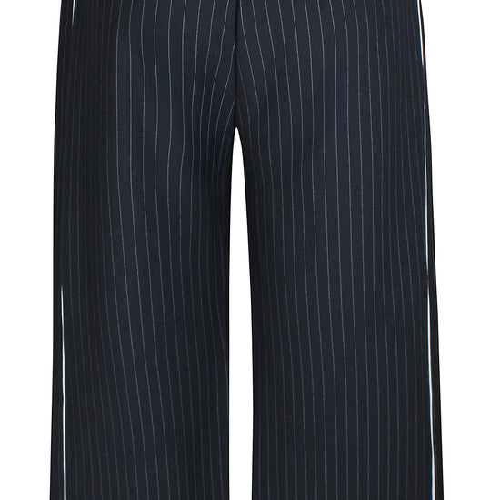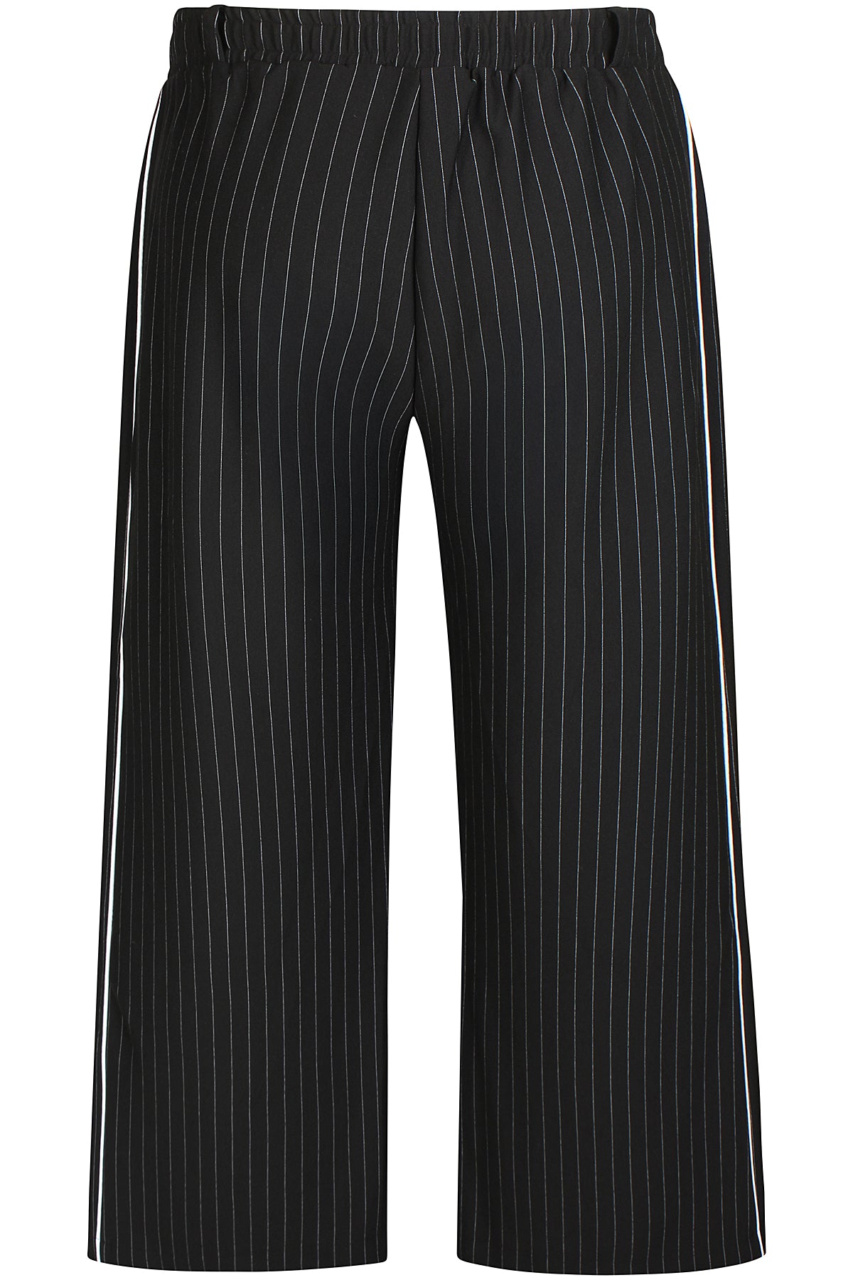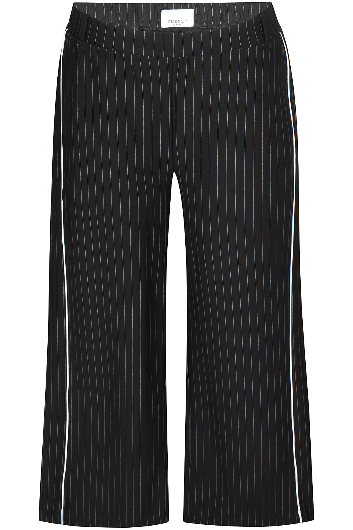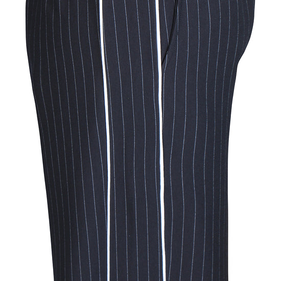 Bukserne har et alsidigt look, der gør dem ideelle til både afslappede og mere formelle anledninger. Den brede pasform og diskrete stribeeffekt giver et slankende og sofistikeret udtryk, mens piping-detaljen tilfører et sporty twist. Match dem med en skjorte eller en plus size top for et elegant hverdagsoutfit, eller style dem med en plus size blazer til kontoret.