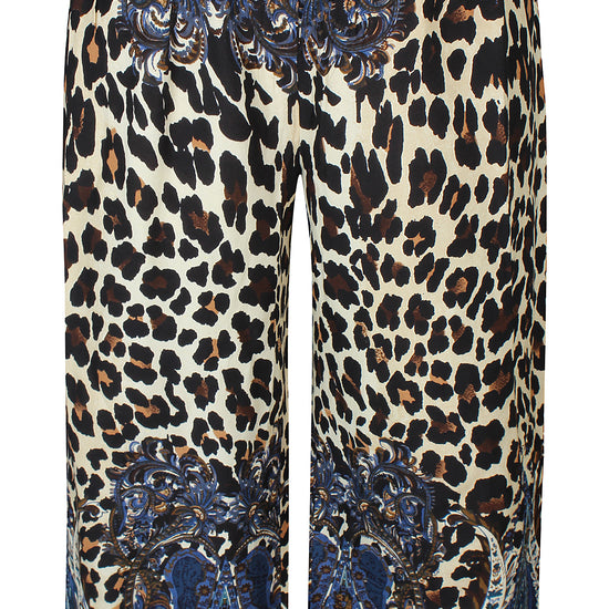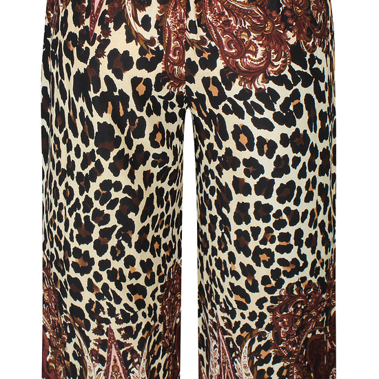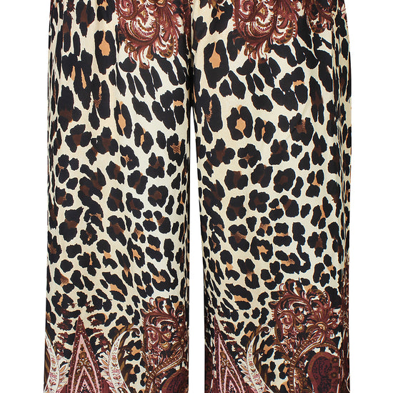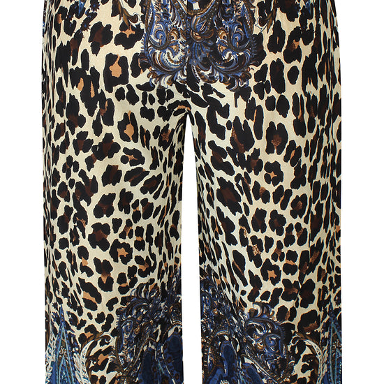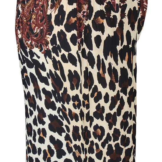 Skil dig ud med disse bukser fra Zhenzi, der kombinerer klassisk leopardprint med et eksklusivt mønster nederst på benene. Bukserne er fremstillet i 100% viskose, hvilket gør dem lette og behagelige at have på.