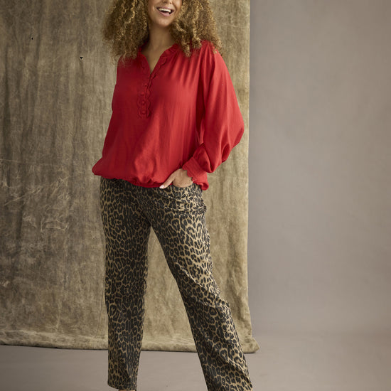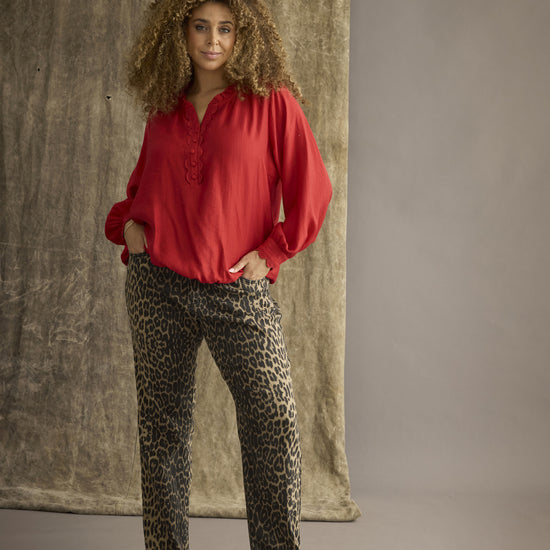 Disse bukser fra Zhenzi forener flot leopardprint med en komfortabel, lige pasform. Materialet består af 98% bomuld og 2% elastan, hvilket sikrer både blødhed og fleksibilitet. Du får: