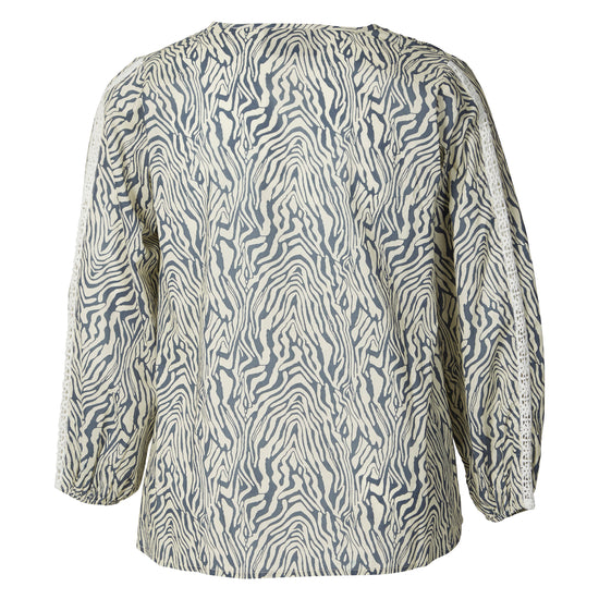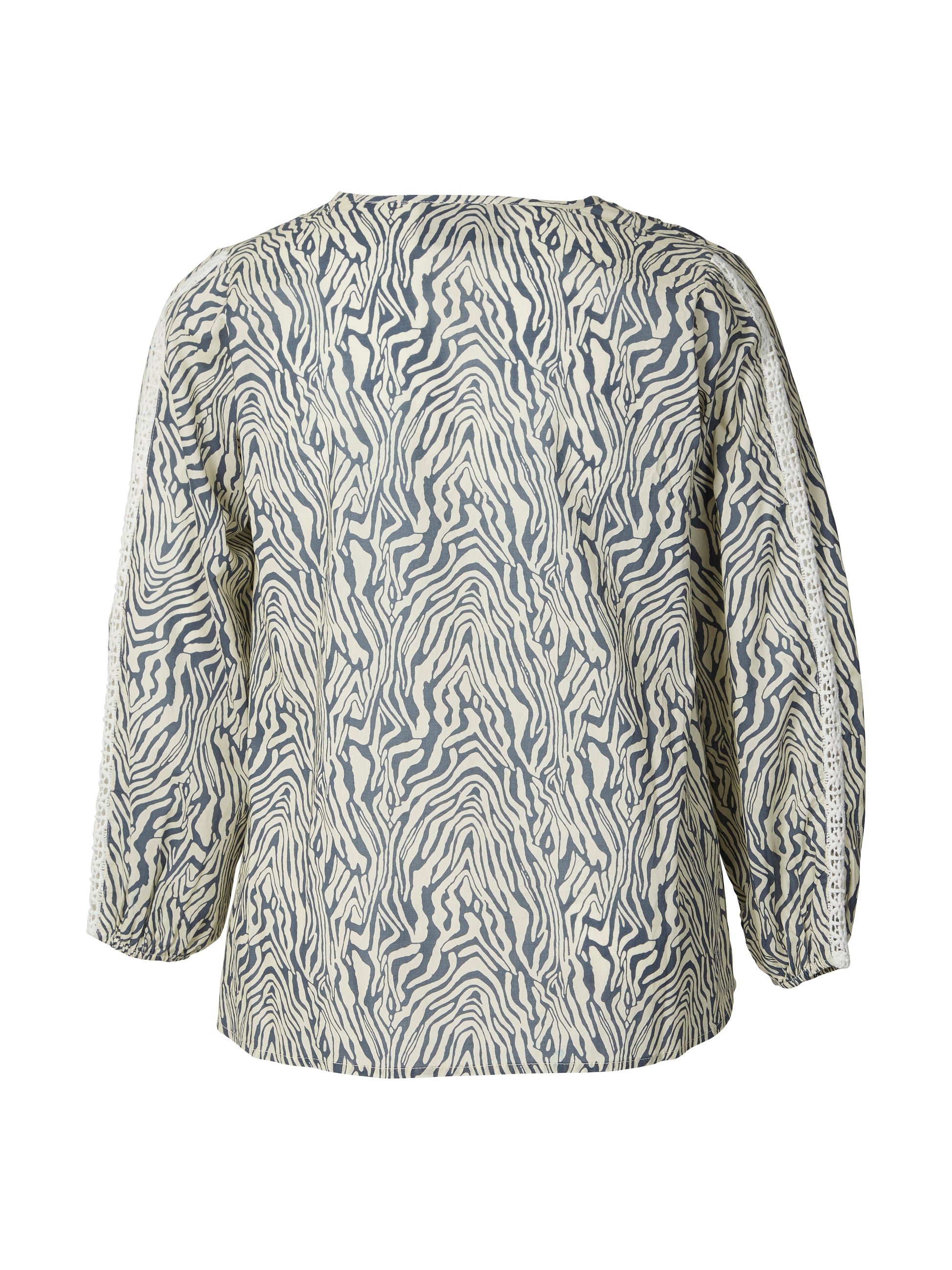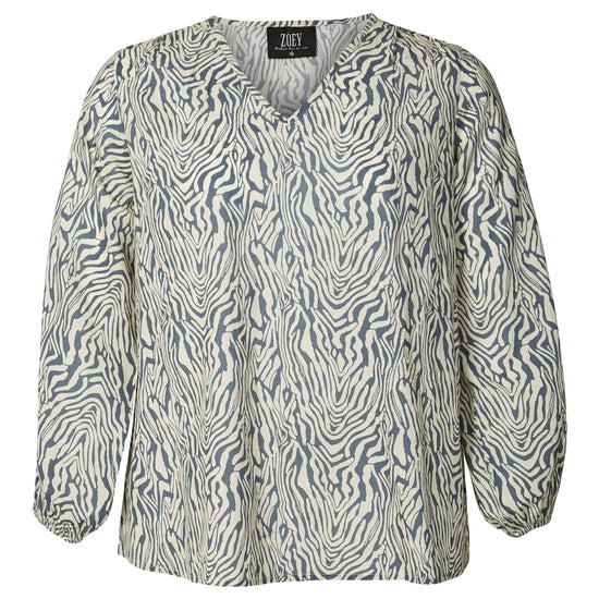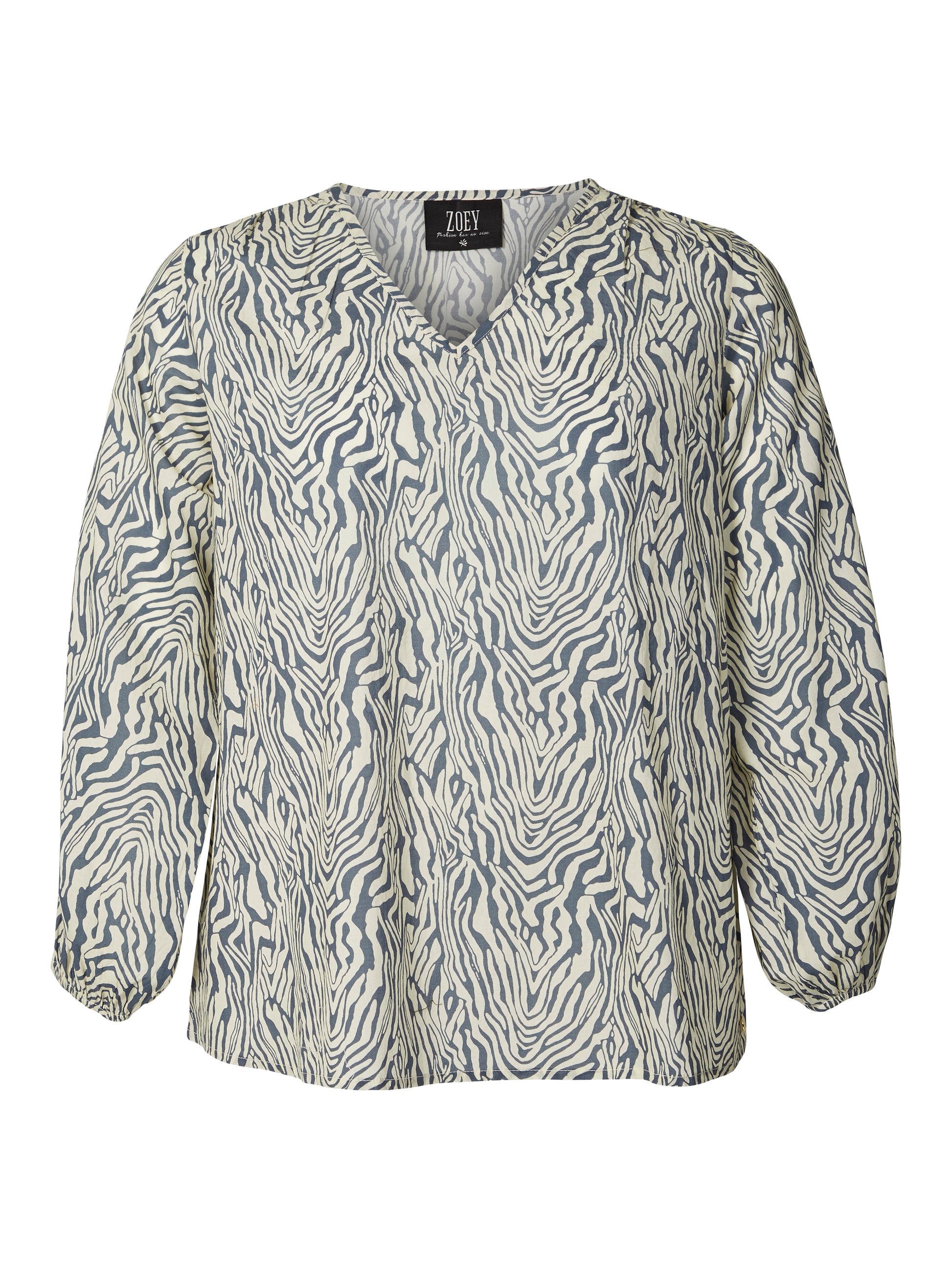 Oplev en bluse fra Zoey, der kombinerer lethed, komfort og et trendy design. Blusen er syet i 100% bomuld, hvilket gør den både blød og åndbar. Det abstrakte zebramønster i grå og creme giver et moderne udtryk, og den løse pasform sikrer, at du føler dig veltilpas dagen igennem.