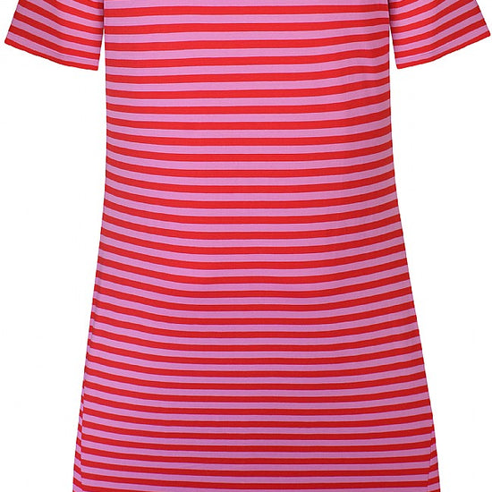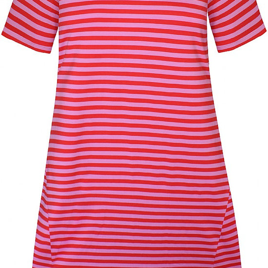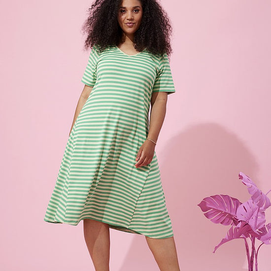 Denne kjolen er designet for å fremheve figuren din og gi garderoben et snev av eleganse. Den har en A-form, korte ermer og en vakker V-hals. Med en blanding av 94 % polyester og 6 % elastan, sikrer den både en flatterende passform og en behagelig opplevelse hele dagen.