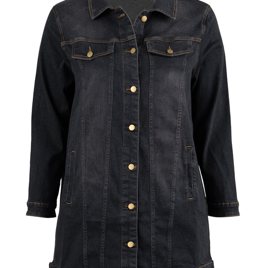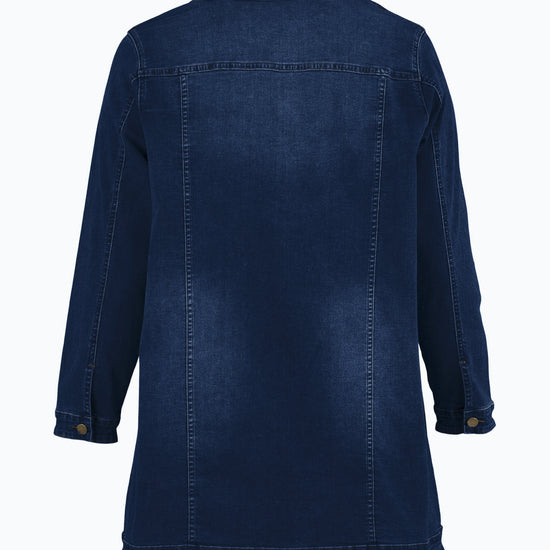 Lang denimjakke med klassiske detaljer