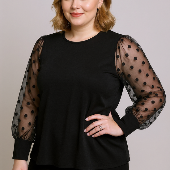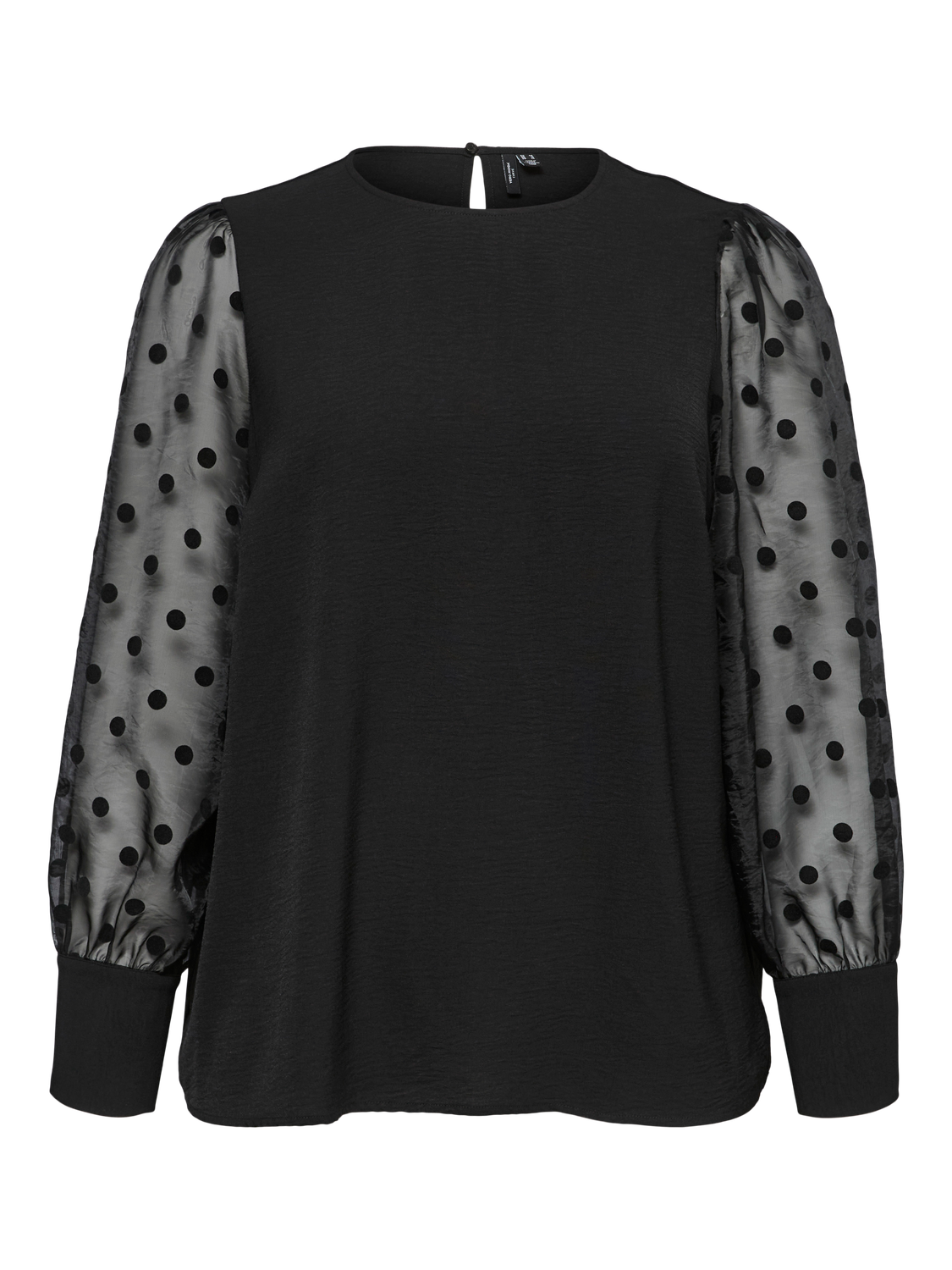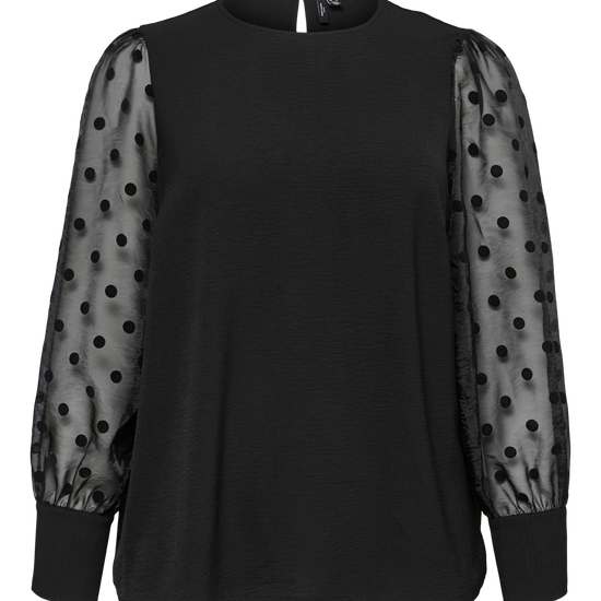 Sort bluse med elegante balloonærmer fra Vero Moda Curve