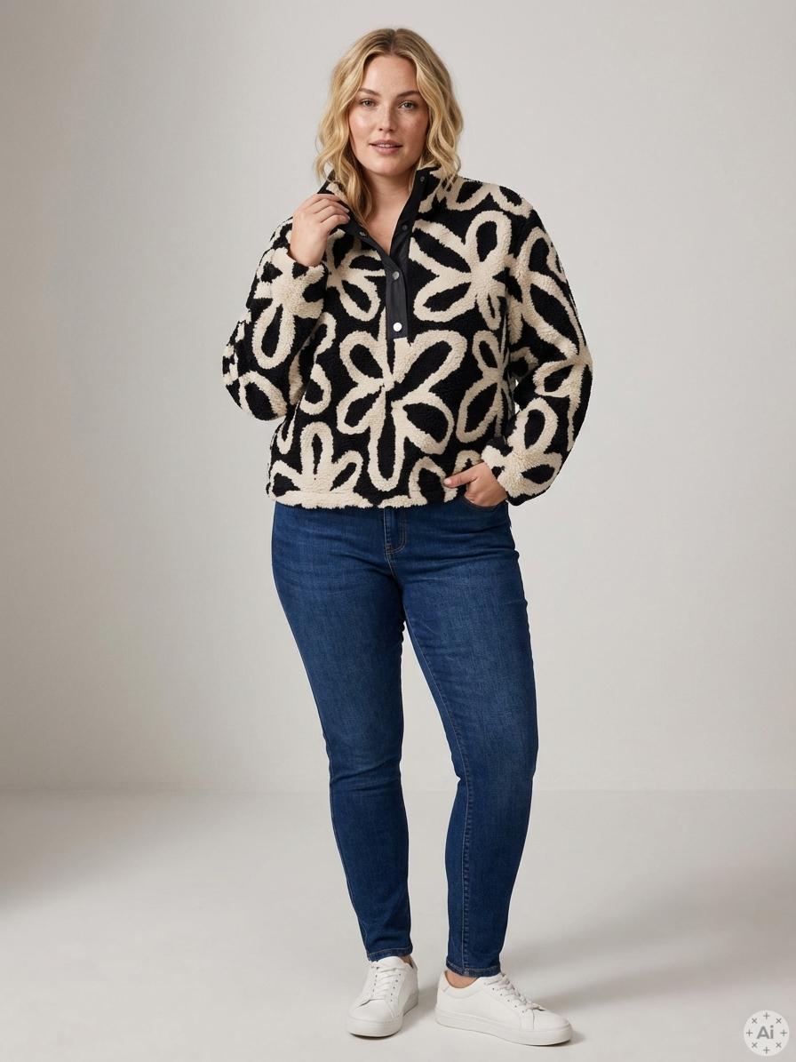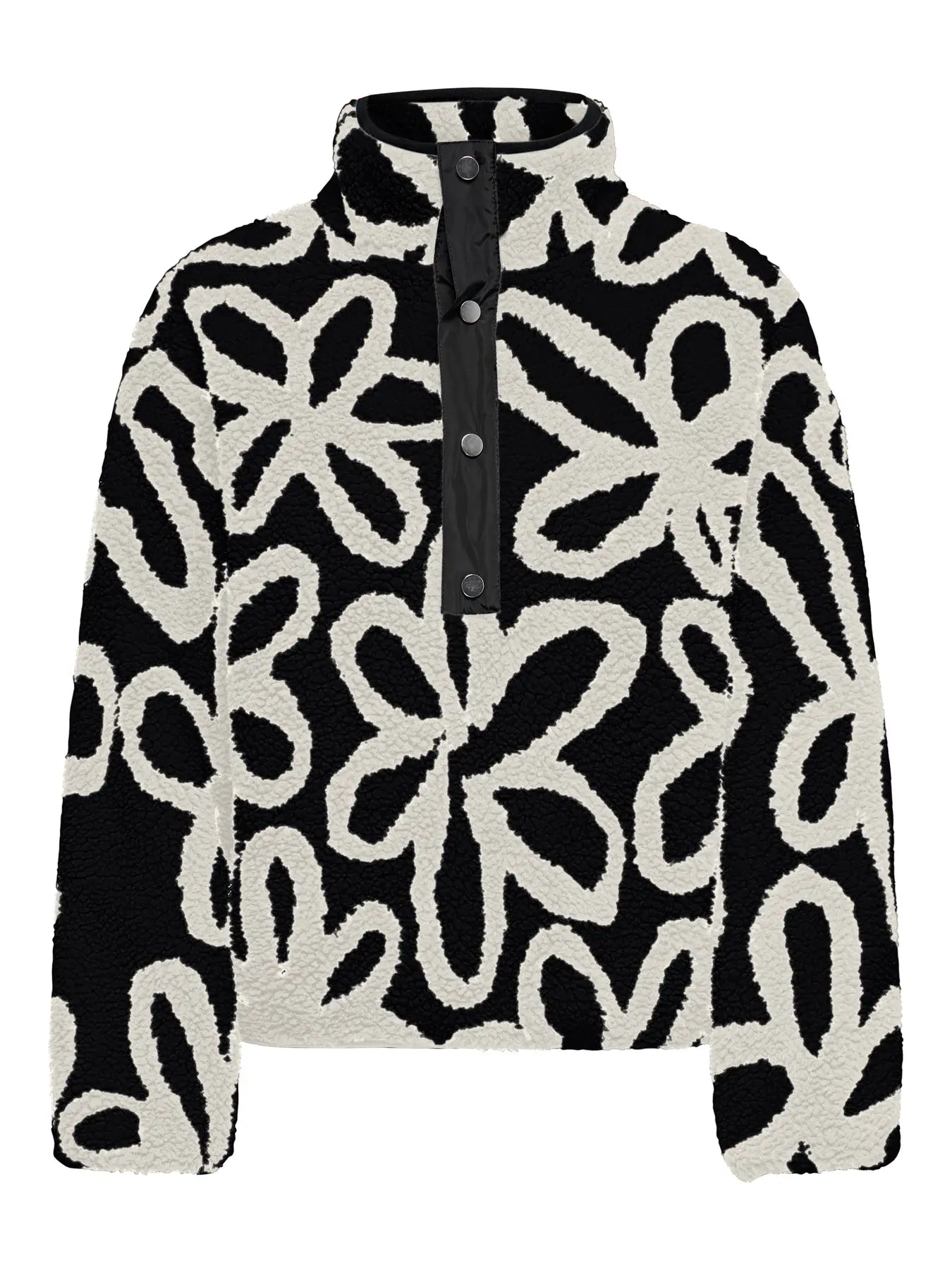 Denne teddyjakke kombinerer komfort og funktionalitet med sit bløde, fluffy materiale, der kendetegnes ved sin løkkede overflade, som sikrer både varme og behagelighed. Jakken har et klassisk V-udskæring design og lange ærmer, der sammen med knaplukningen giver et stilfuldt og afslappet udtryk. Med sit mønstrede all-over print i sort giver denne jakke et casual look, der er let at style til efterårets køligere dage. Den er desuden vandtæt og åndbar, hvilket gør den ideel til alsidigt brug.