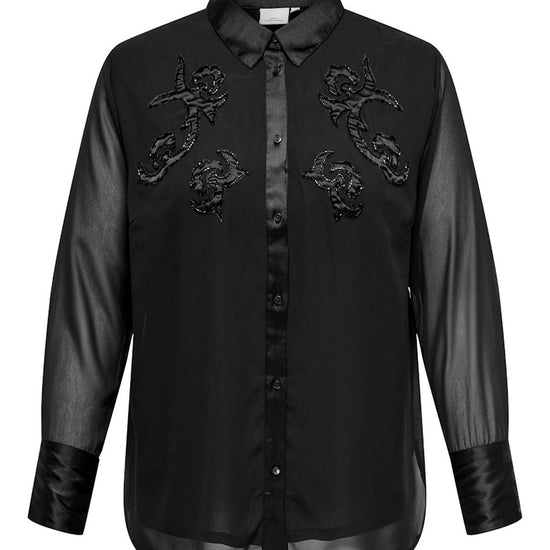Gi garderoben din et stilig løft med denne feminine skjorten fra ONLY CARMAKOMA, designet spesielt for kurvede kvinner i størrelse 42-54. Skjorten er perfekt for å tilføre myke farger og diskrete detaljer til looken din. Denne svarte skjorten med vakker utsmykning gjør det både enkelt og elegant å kombinere med tidløse jeans eller et skreddersydd skjørt.