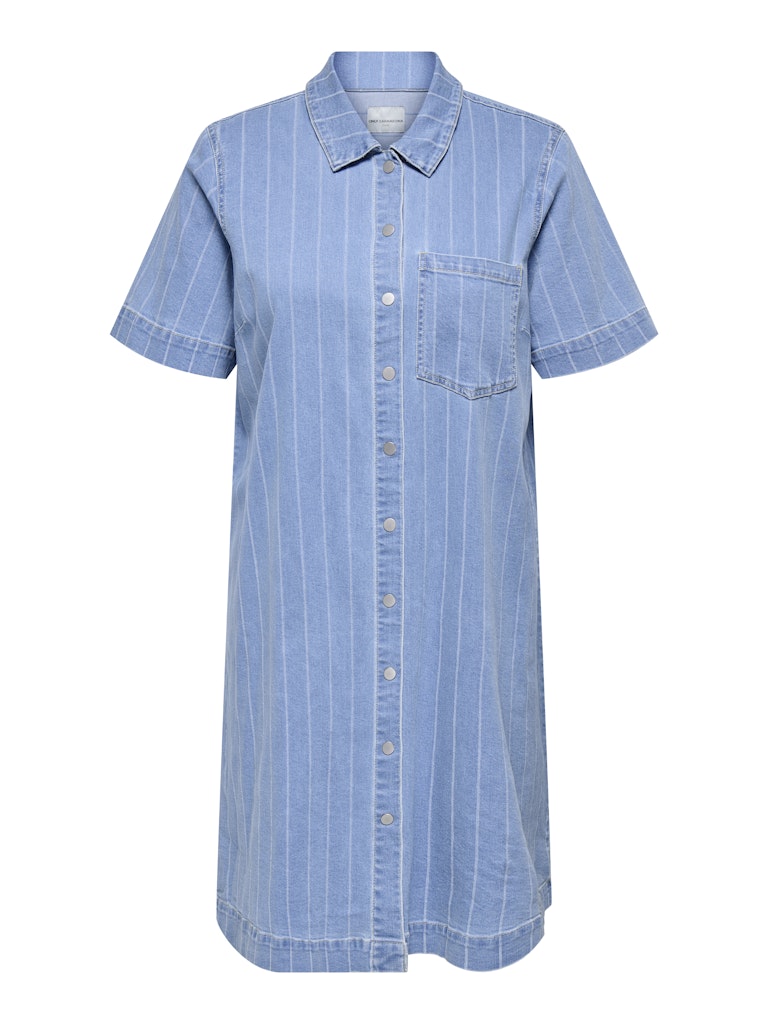 Utforsk den perfekte kombinasjon av stil og komfort med denne denimkjolen fra ONLY CARMAKOMA, skapt for kurvede kvinner i størrelsene 42-54. Kjolen er ideell for dem som ønsker en elegant og behagelig garderobefavoritt til både hverdagsbruk og mer formelle anledninger. Med sin regular fit og lyseblå denimfarge fremhever den den vakre, feminine silhuetten.