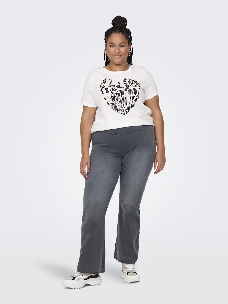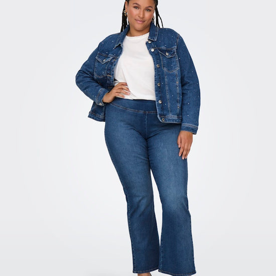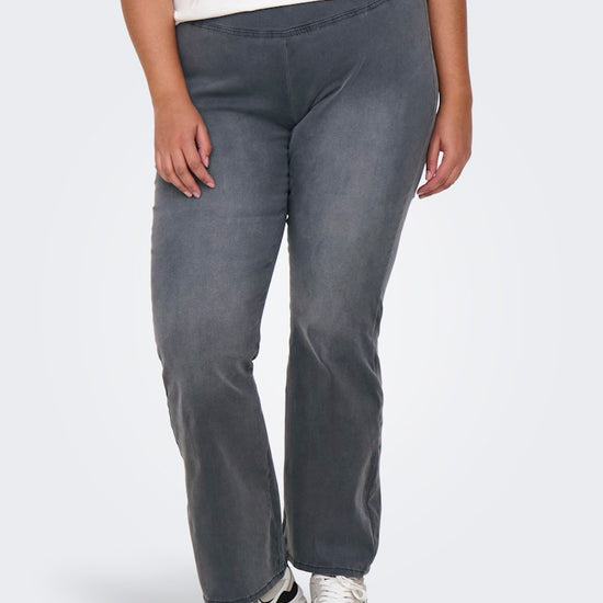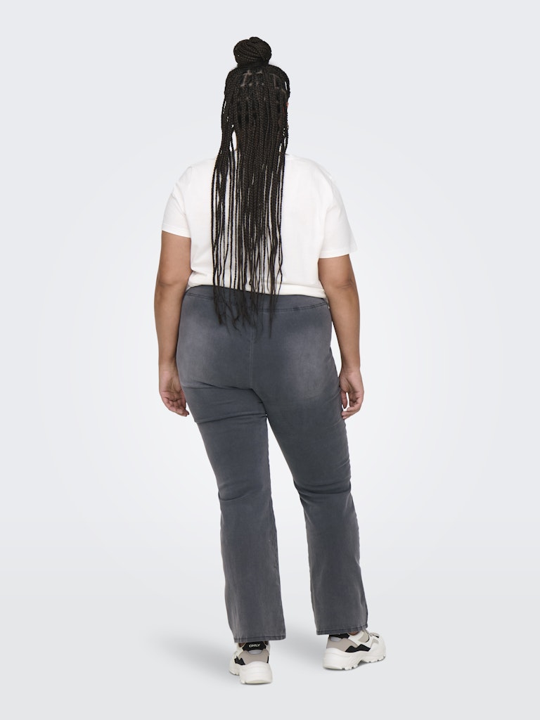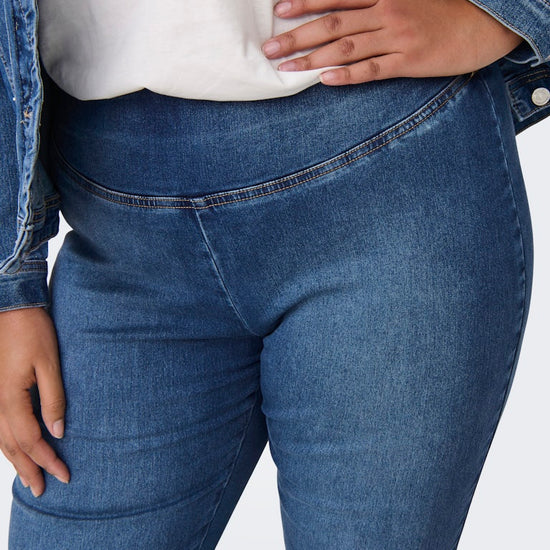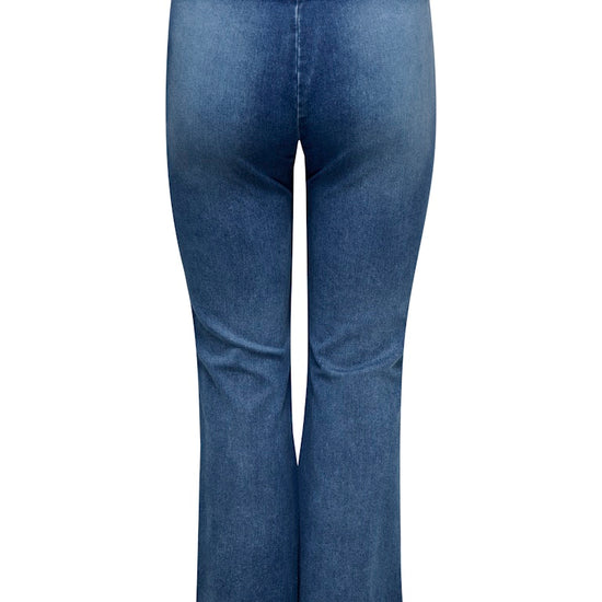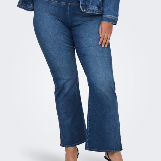 Disse jeansene med utsving fra ONLY CARMAKOMA er designet for å fremheve din kurvede silhuett med stil og komfort. Laget i mellomblå denim med en vakker mellomvask, gir de et moderne, vasket utseende som gjør dem til et must-have i enhver garderobe. Høy midje og bred elastisk linning sørger for en god passform som er både komfortabel og stilig.