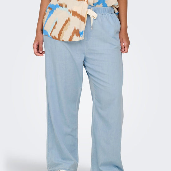 Oppgrader garderoben din med disse stilige culotte buksene fra ONLY CARMAKOMA. Designet i en elegant medium blå denimfarge, tilbyr disse buksene et moderne og allsidig utseende som passer til enhver anledning. Den brede benpassformen sikrer både komfort og en trendy silhuett, mens det elastiske midjebåndet med snøring gir en perfekt og justerbar passform.