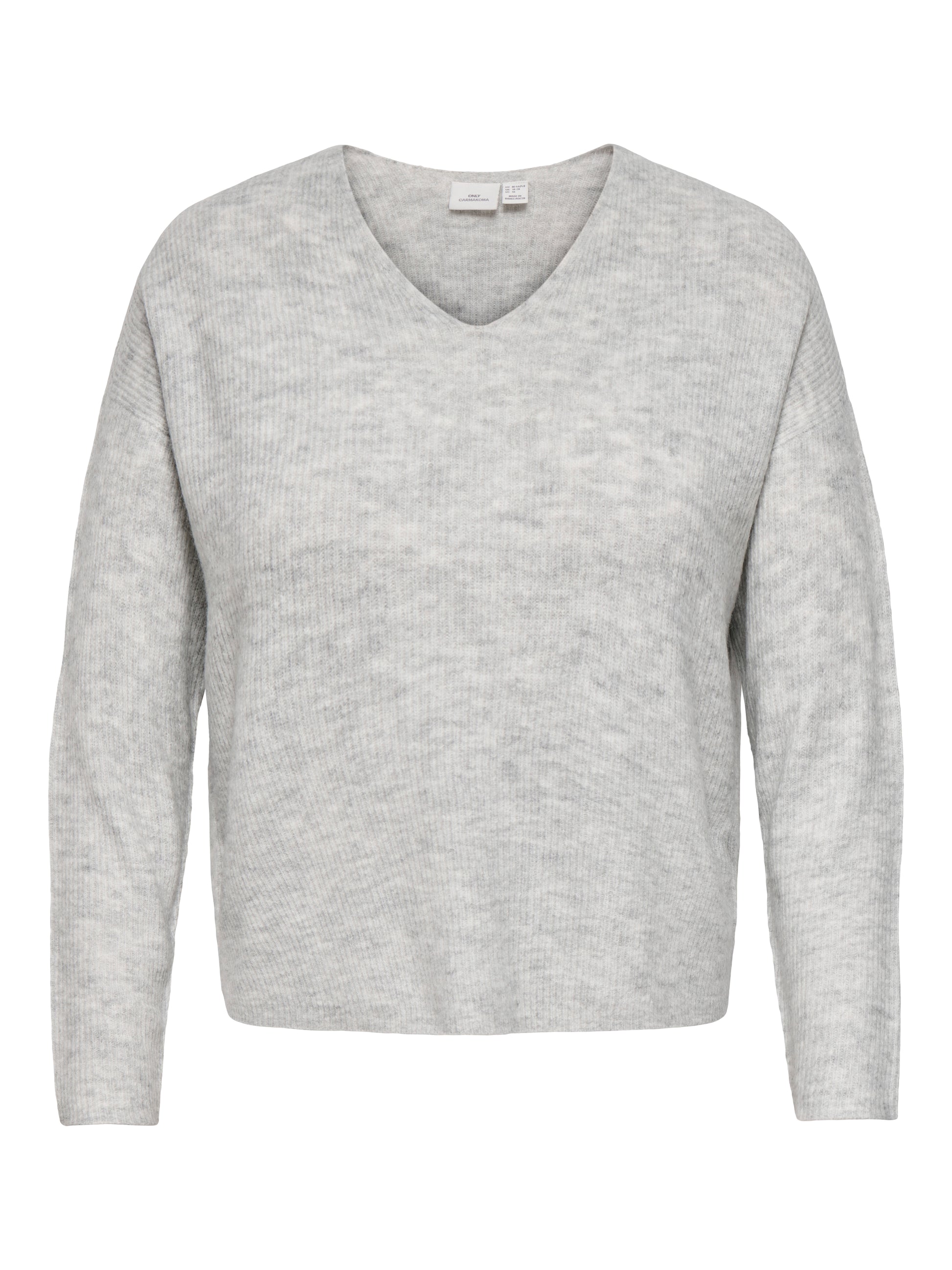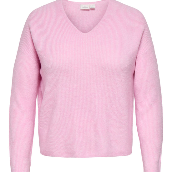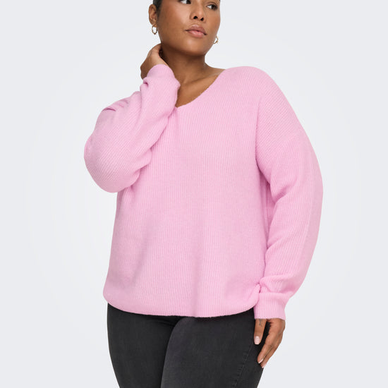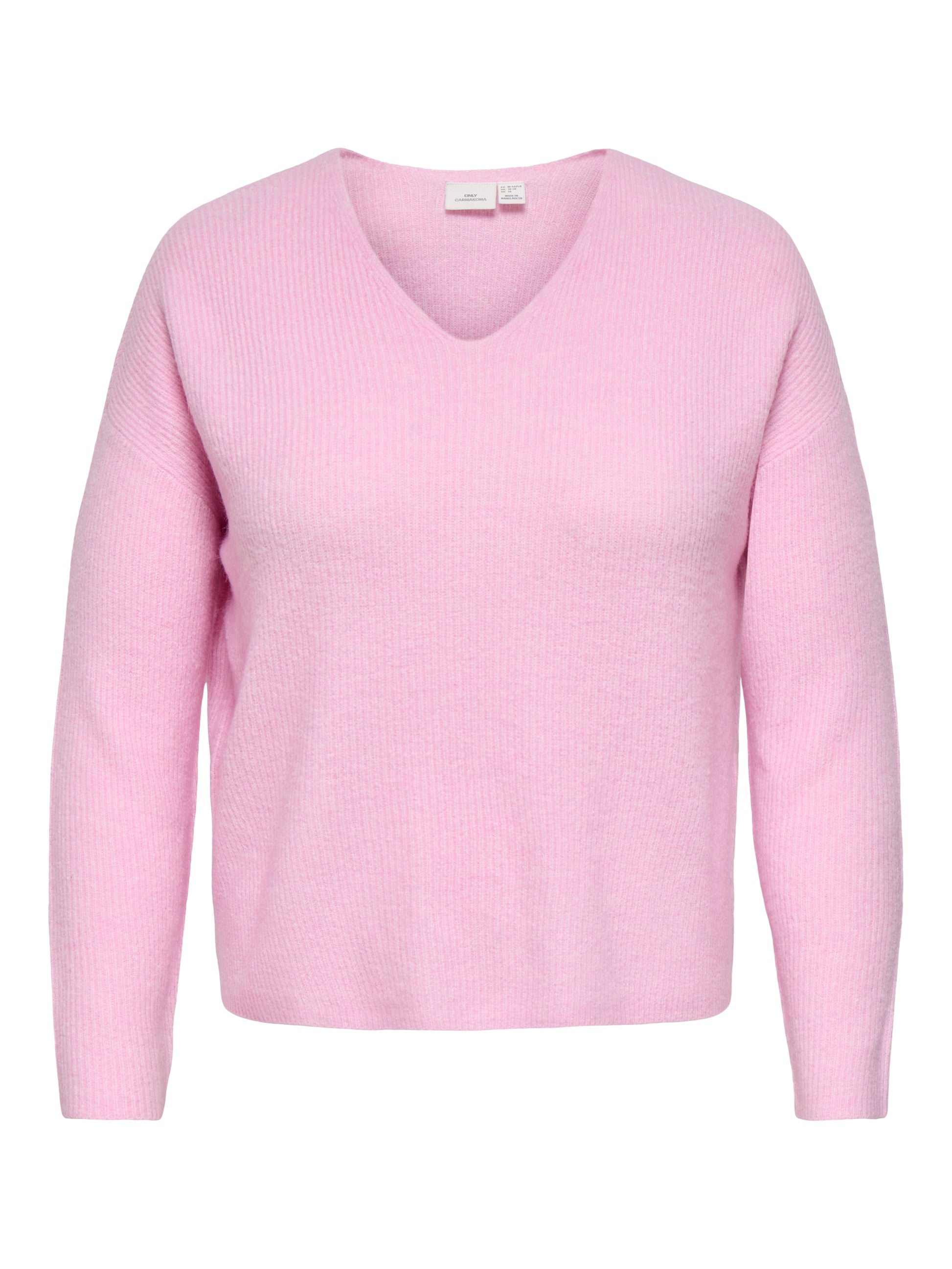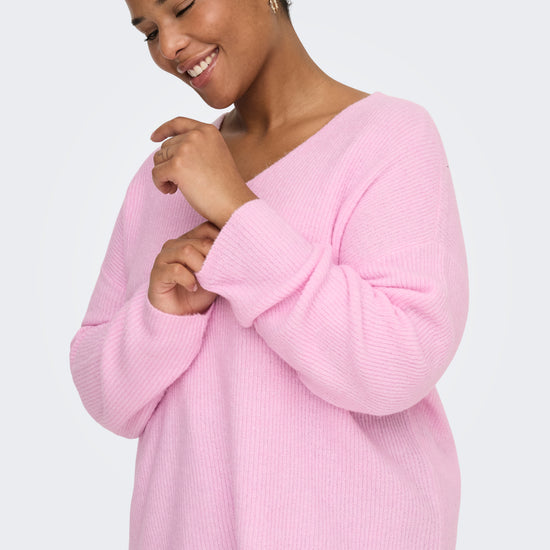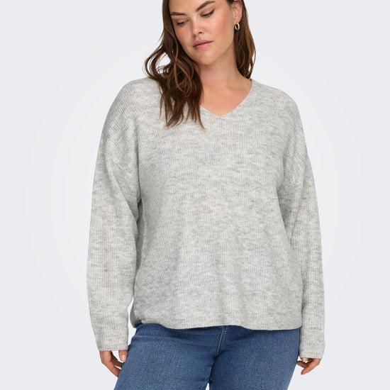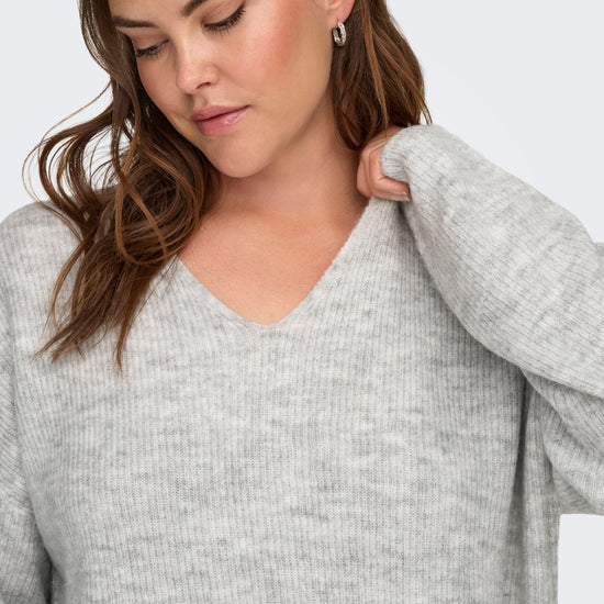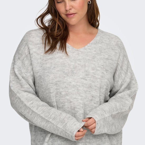 Finstrikket genser fra ONLY CARMAKOMA. . Den flatterende V-halsen og lange ermene med senkede skuldre skaper en avslappet og elegant look med jeans, et langt skjørt og støvler.