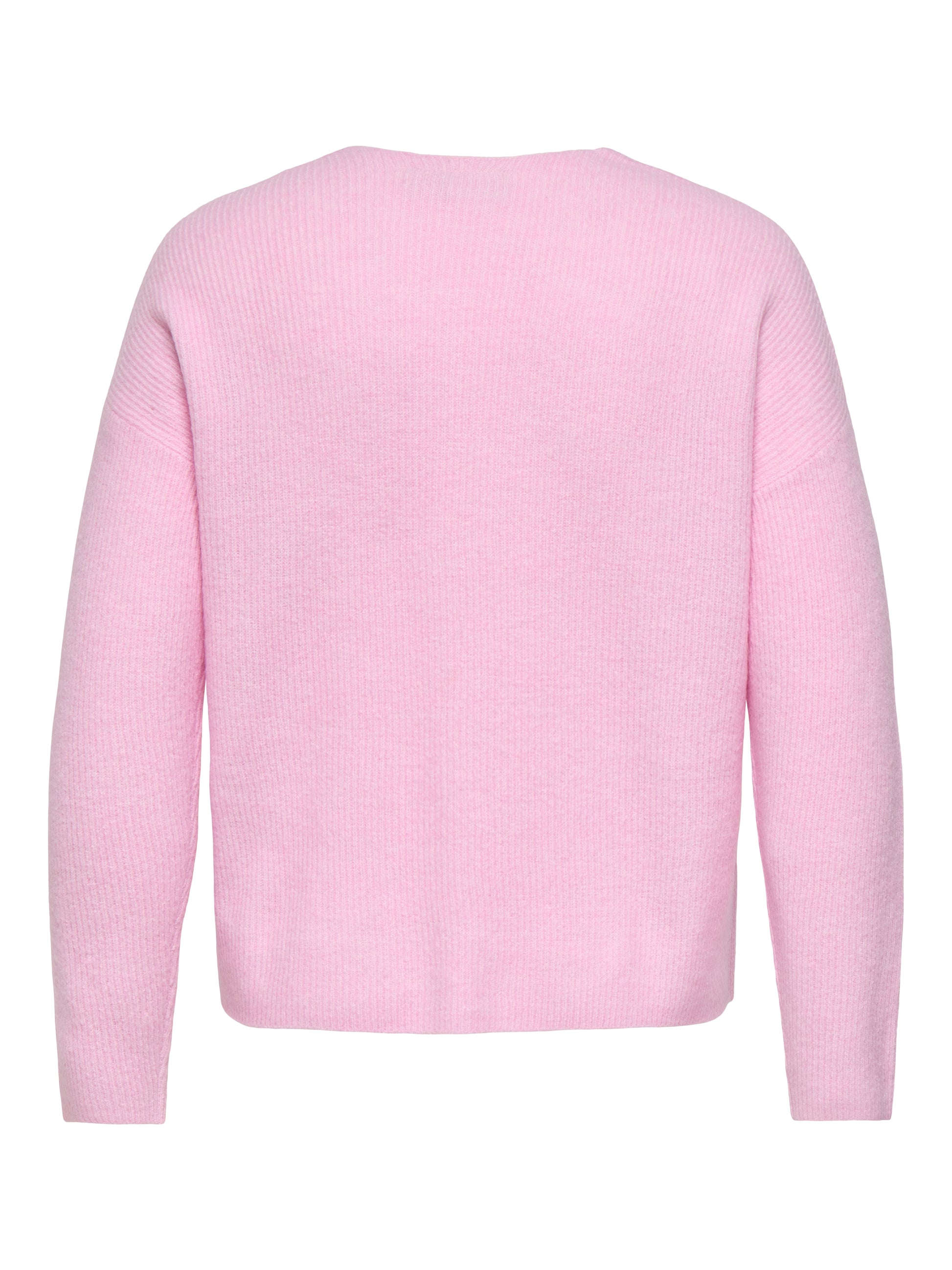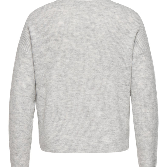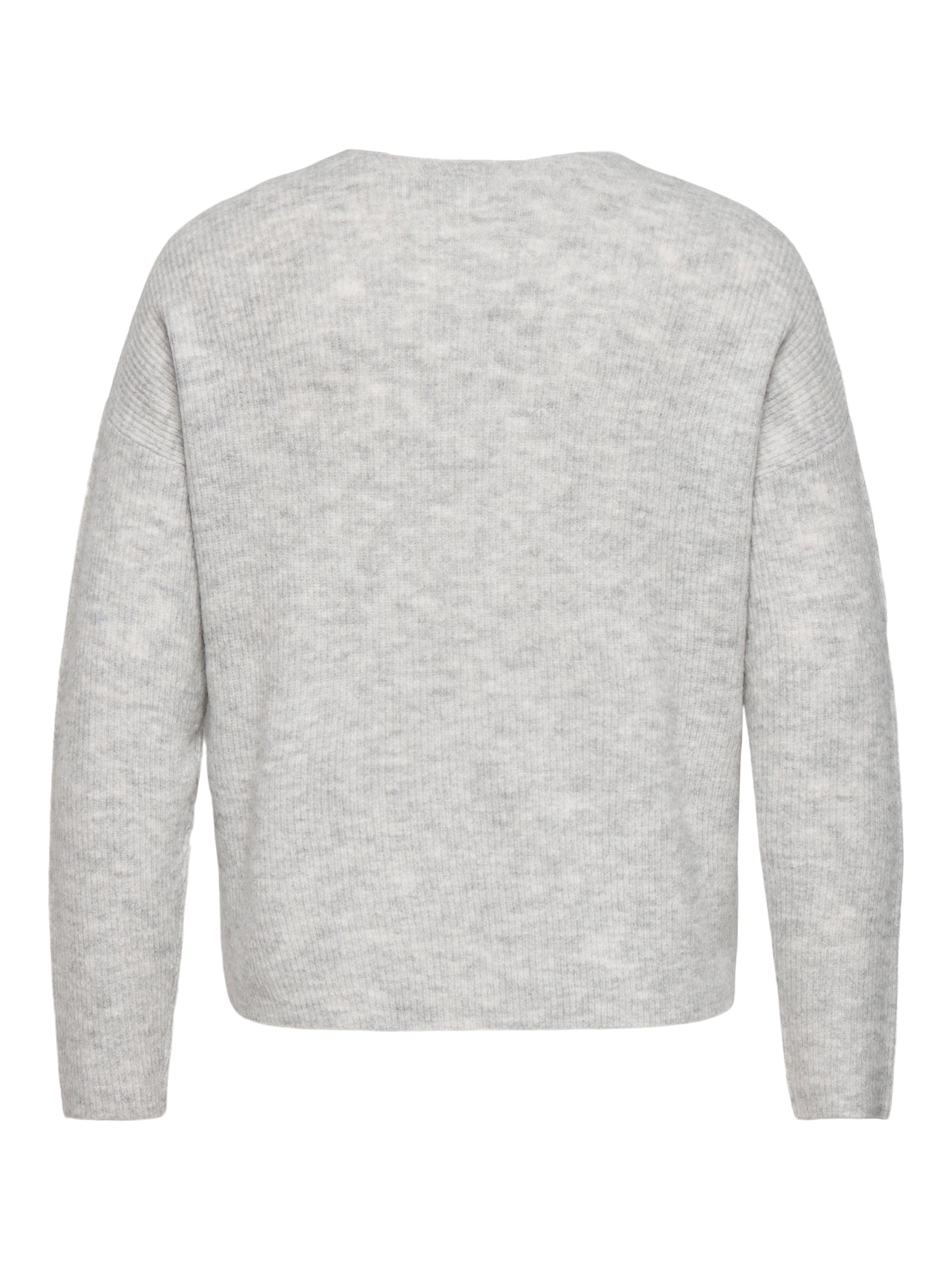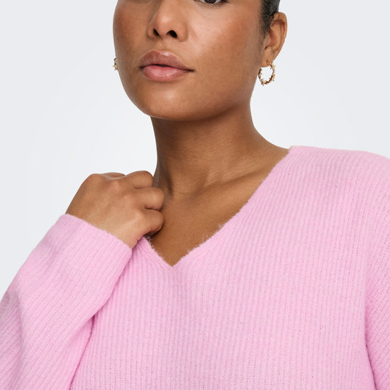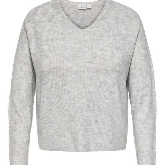 Finstrikket genser fra ONLY CARMAKOMA. . Den flatterende V-halsen og lange ermene med senkede skuldre skaper en avslappet og elegant look med jeans, et langt skjørt og støvler.