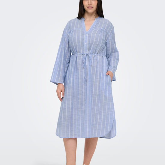 Forvandle garderoben din med denne vakre kjolen fra ONLY CARMAKOMA, designet for å fremheve den feminine, kurvede silhuetten. Med en Regular Fit passer denne kjolen perfekt til enhver kroppsform og skaper et elegant utseende, uansett anledning. Kjolen er tilgjengelig i de fortryllende fargene Tempest CLOUD DANCER og Soft Chambray CLOUD DANCER , som gir et friskt pust til stilen din.