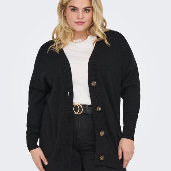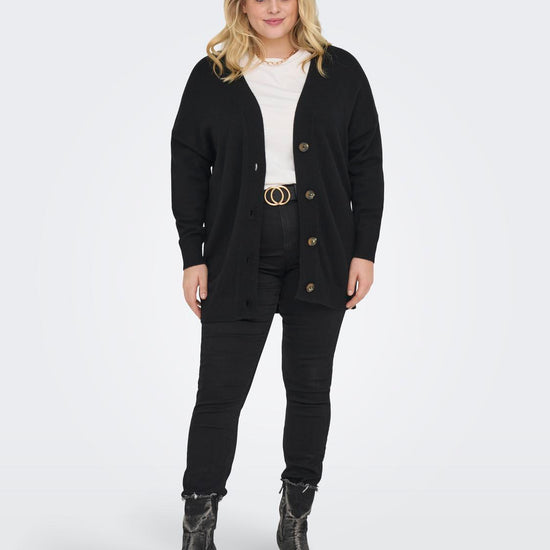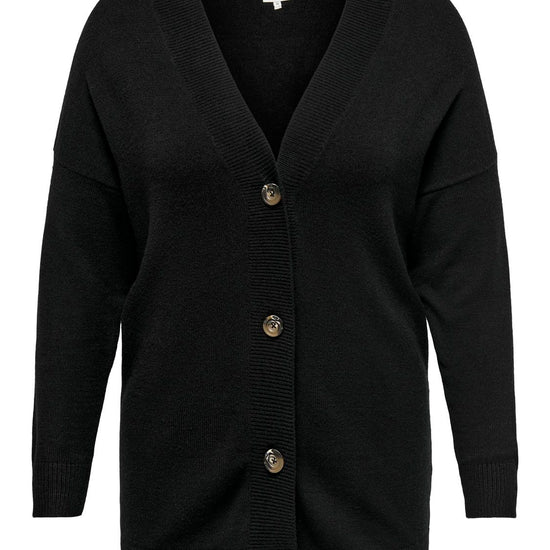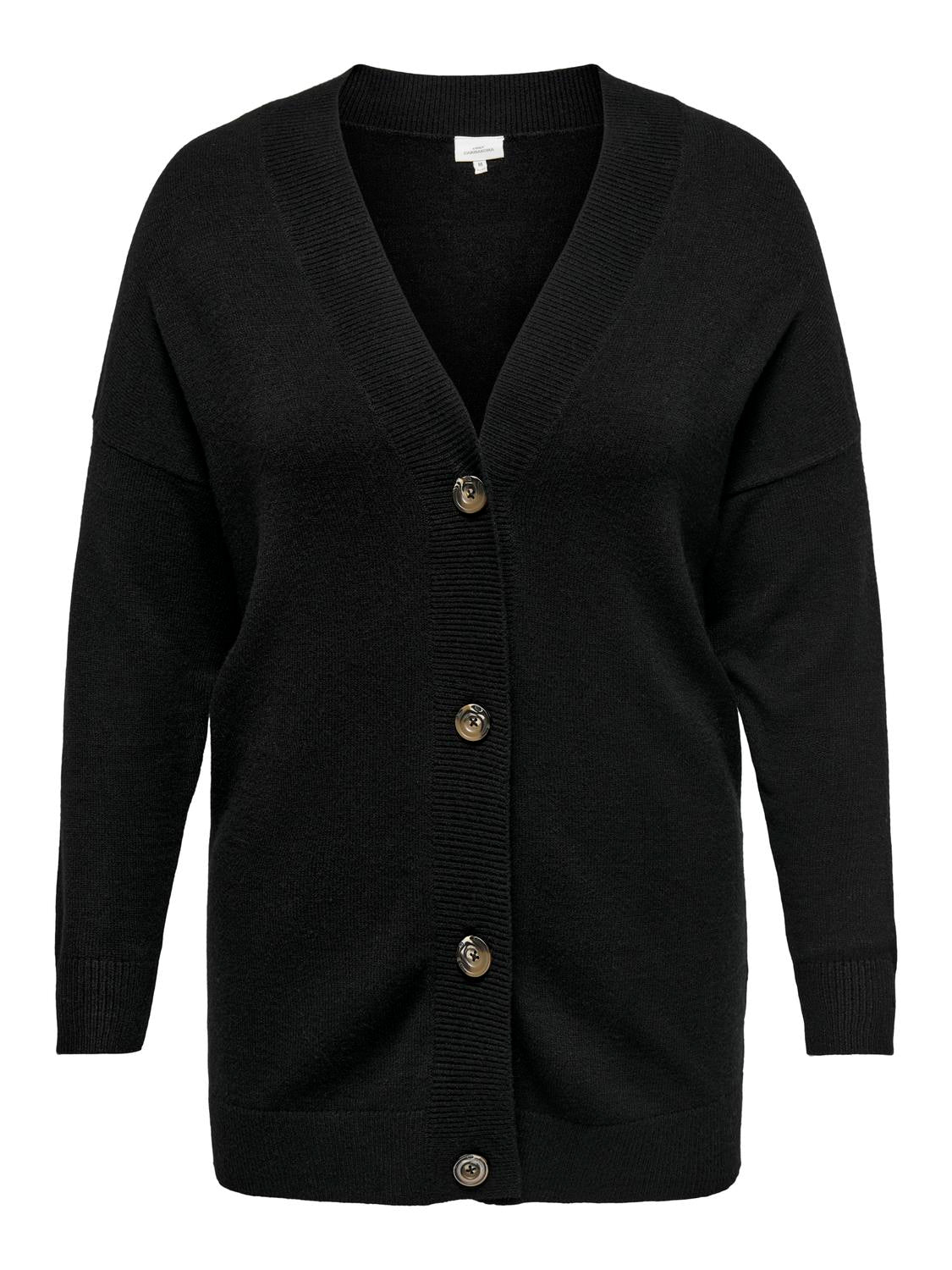 Cardigan med lange ærmer og V-hals, der lukkes med knapper. Fremstillet i en blød blanding af blandt andet viscose og genanvendt polyester, som giver et komfortabelt og strikket fit.