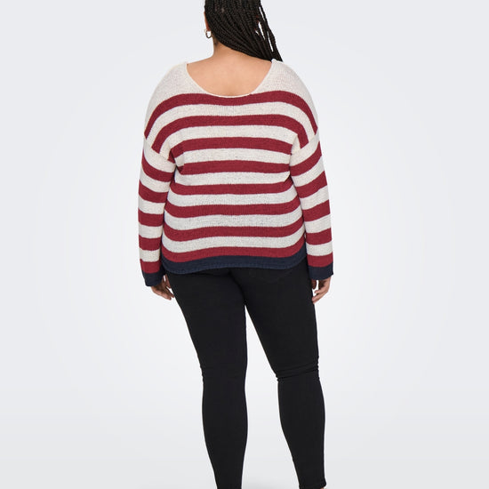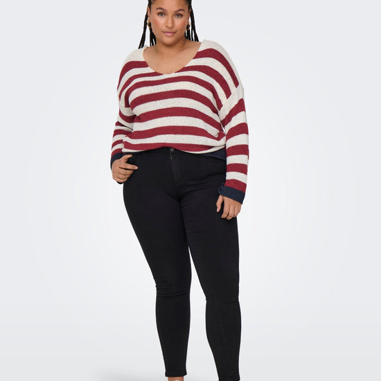 Blusen kommer i en klassisk rød og hvit stripet design, som gir et tidløst og elegant preg til garderoben din. Den flate strikketypen gir en fleksibel og komfortabel passform med et rent uttrykk, ideell for både hverdagsbruk og festlige anledninger. Kombiner den med et par plus size jeans eller et stilig plus size skjørt for en allsidig og stilfull look.