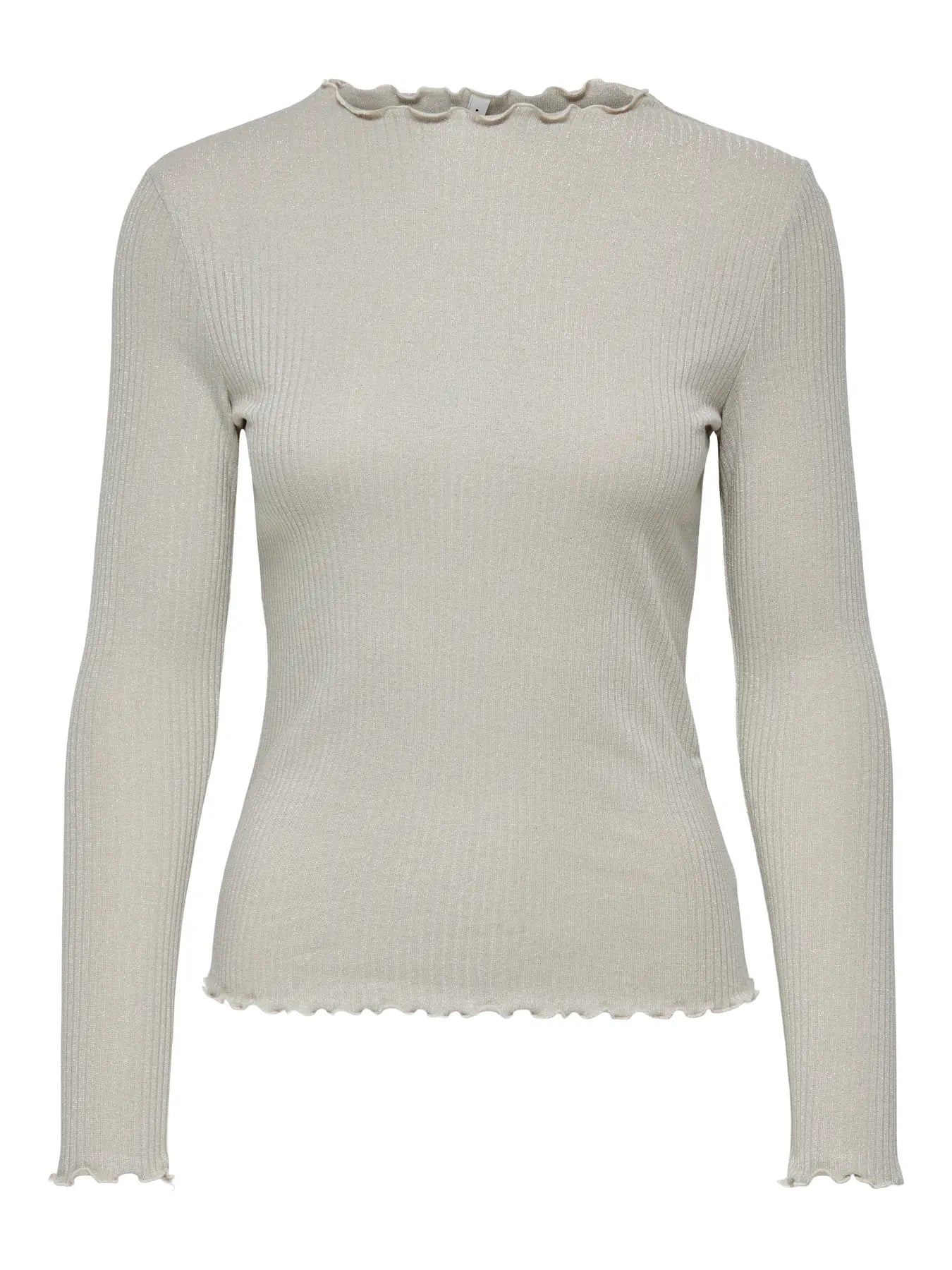 Sett prikken over i-en på både hverdag og fest med denne elegante glittertoppen fra ONLY CARMAKOMA. Toppens ribbestrikk gir en tidløs look og ekstra stretch, mens glitrende detaljer og babylock-kanter gjør den perfekt til både spesielle anledninger og hverdagsbruk.