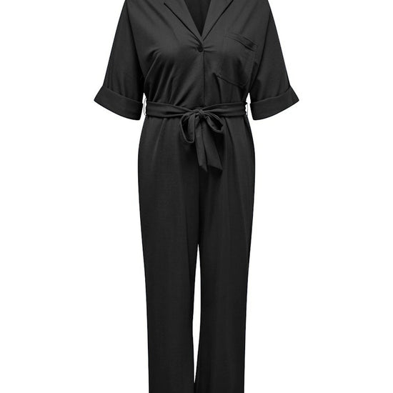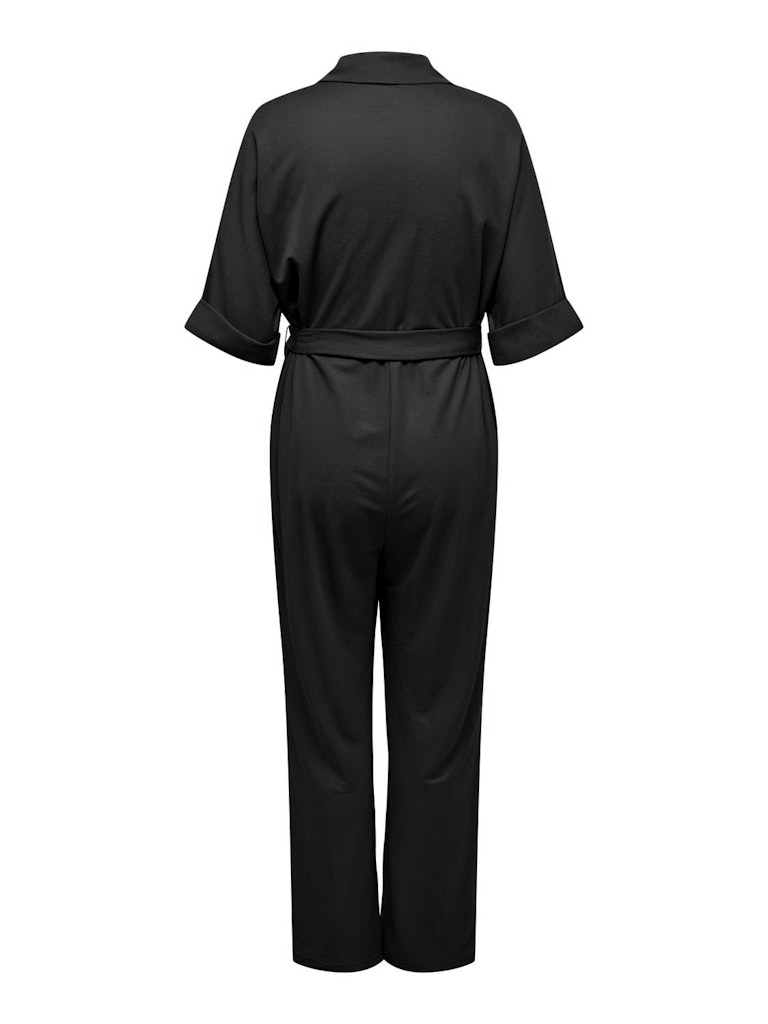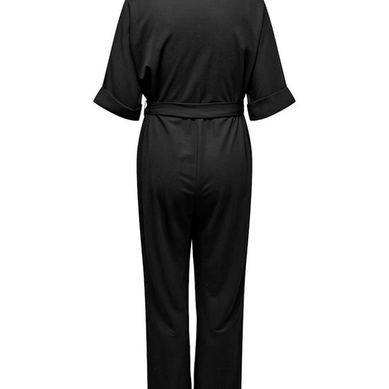 Unngå kleskriser med denne stilrene svarte jumpsuiten fra ONLY CARMAKOMA, laget i myk og elastisk jersey for optimal komfort. Den har batwing-ermer, oppbrettede mansjetter, brystlomme og justerbar midje med belte og beltestropper – alt designet for å fremheve dine former på en flatterende måte.
