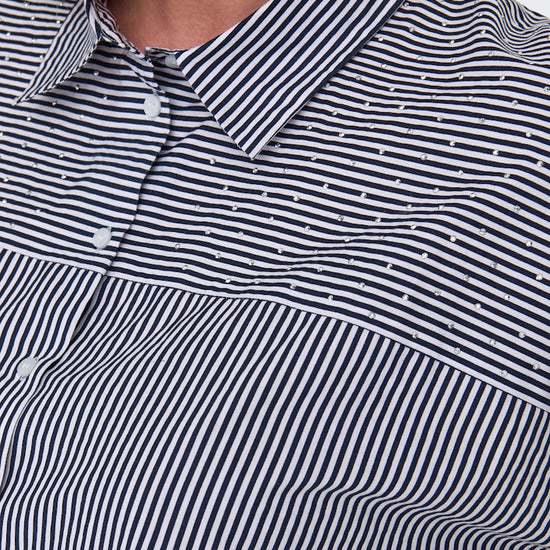 Skjorten er tilgjengelig i flere størrelser, inkludert 42, 44, 46, 48, 50, 52 og 54. Med sin kombinasjon av blå og hvite striper er den et allsidig tillegg til enhver garderobe. Enten du foretrekker en avslappet eller mer polert stil, vil denne skjorten være et perfekt valg. Utforsk flere skjorter i vår skjortekolleksjon.