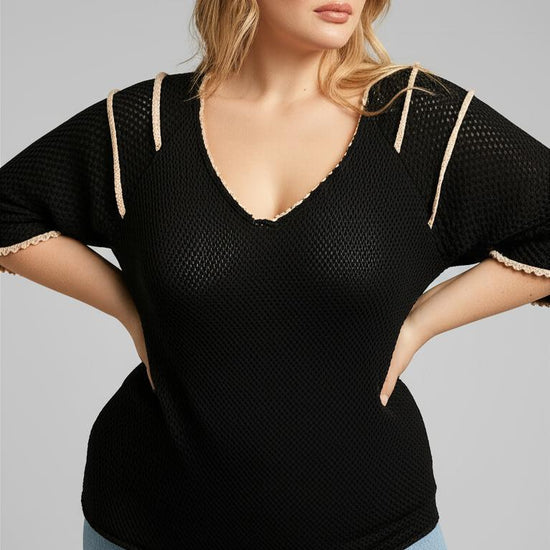 Blusen er laget av en myk strikk som holder deg varm og komfortabel, uansett sesong. Dens allsidige design gjør den ideell for både hverdagsbruk og festlige anledninger. Kombiner den med et par plus size jeans eller en plus size skjørt for et komplett utseende som fremhever din unike stil.