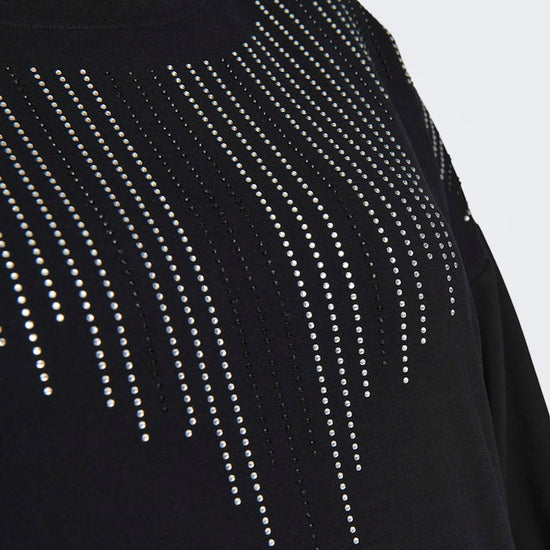 Genseren er laget av en myk blanding av polyester, viskose og elastan (63 % polyester, 34 % viskose, 3 % elastan), som sikrer en behagelig passform og holdbarhet. De dekorative rhinestones på brystet gjør at du skiller deg ut på en elegant måte. Perfekt for de som ønsker en kombinasjon av stil og komfort.