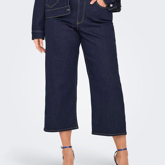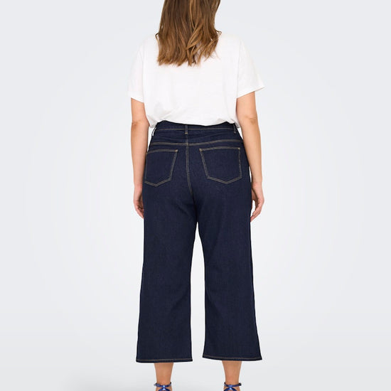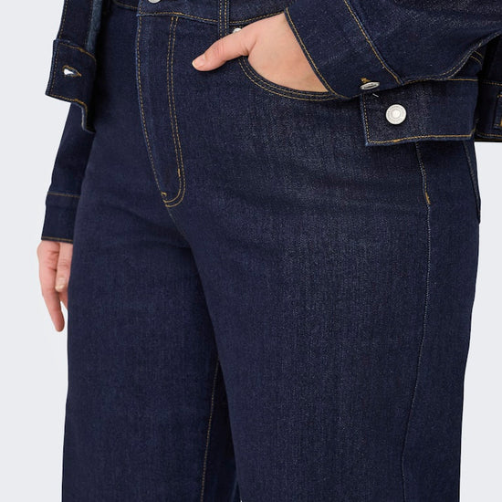 Oppdag det perfekte paret jeans for både jobb og fritid med disse stilige jeansene med brede ben fra ONLY CARMAKOMA, designet spesielt for kurvede kvinner i størrelse 42-54. Med sin vakre mørkeblå denimfarge og moderne snitt vil disse jeansene raskt bli ditt nye favorittplagg. De er laget for å fremheve den vakre, feminine silhuetten og få deg til å se fantastisk ut hele dagen lang.
