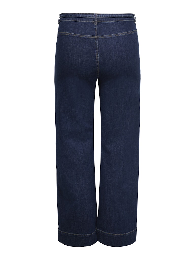 Disse wide fit jeans fra ONLY CARMAKOMA gir deg både en flatterende passform og maksimal komfort. Med høy midje, løs passform og myk denim med stretch, får du et par jeans som sitter behagelig hele dagen og fremhever dine kurver. Det mørkeblå stoffet med lett vasket look gir et sofistikert og moderne uttrykk.