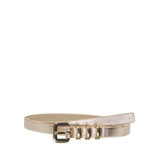 Dette beltet er en del av vår accessorieskolleksjon og er en uunnværlig del av enhver kurvet kvinnes garderobe. Det smale designet med fire dekorative løkker og en elegant spenne gjør det til et allsidig tilbehør som kombinerer både komfort og stil. Enten du velger det i sølv eller gull, vil det garantert tilføre et sofistikert preg til antrekket ditt.