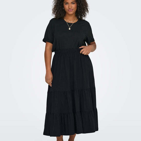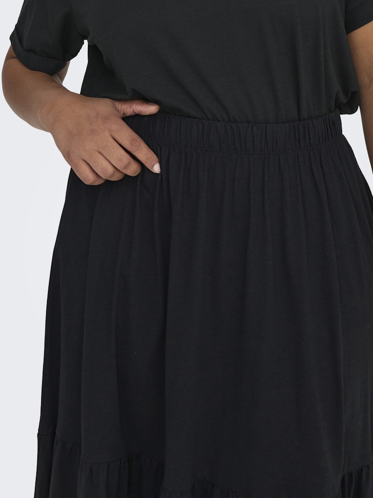 Gjør deg klar til å se fantastisk ut med dette maxi-skjørtet fra ONLY CARMAKOMA . Dette skjørtet er designet spesielt for kurvede kvinner og fremhever en vakker, feminin silhuett. Med elastisk midje og elegante volanger er dette skjørtet både komfortabelt og stilig. Laget av 100 % økologisk bomull, og tilbyr en myk og pustende kvalitet som gjør den ideell for både skole, jobb og hverdagsaktiviteter.
