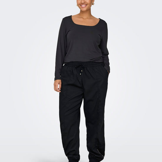 Oppgrader garderoben din med disse trendy buksene fra ONLY CARMAKOMA . Med sin løse passform og elegante sorte farge er de perfekte for både jobb og hverdagsaktiviteter. Buksen er designet for kurvede kvinner i størrelse 42-54 og fremhever den vakre, feminine silhuetten på beste måte.