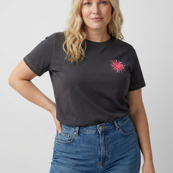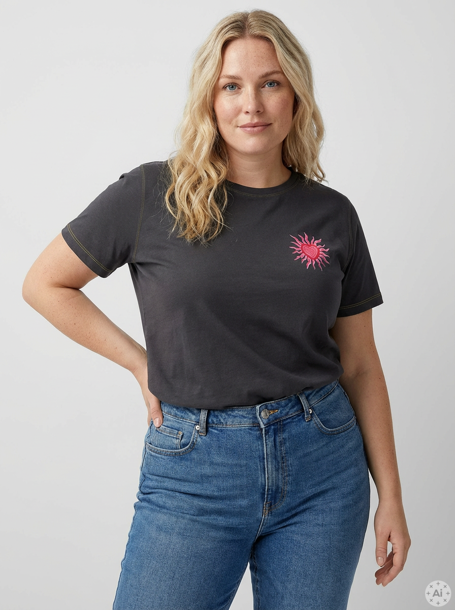 Den allsidige passformen gjør det enkelt å kombinere denne t-skjorten med resten av din garderobe for en fullført look. Sett den sammen med et par smarte jeans og sneakers for et avslappet antrekk som fungerer perfekt i hverdagen. De korte ermene og den lette kvaliteten gjør den også ideell å ha på under en cardigan eller jakke når været krever flere lag.
