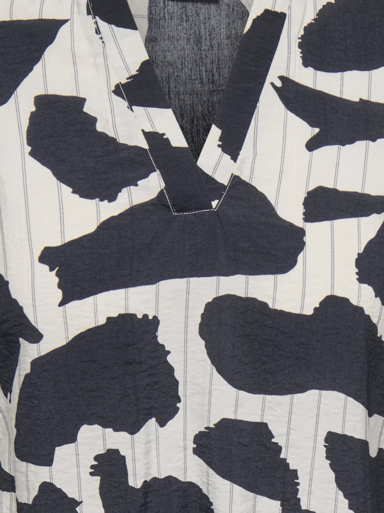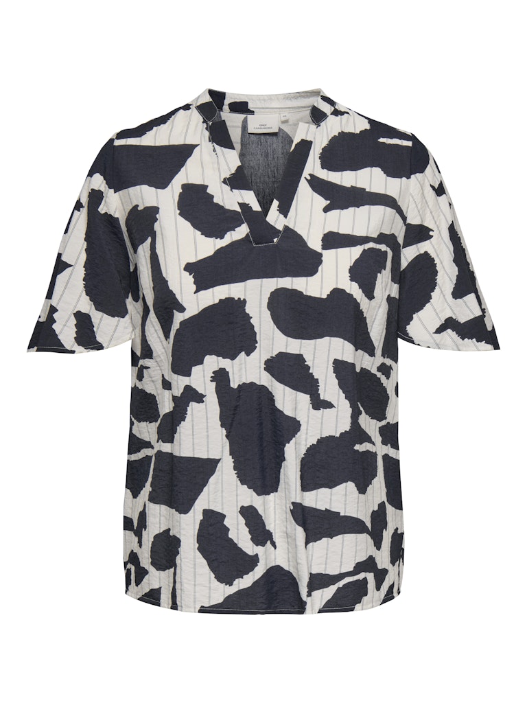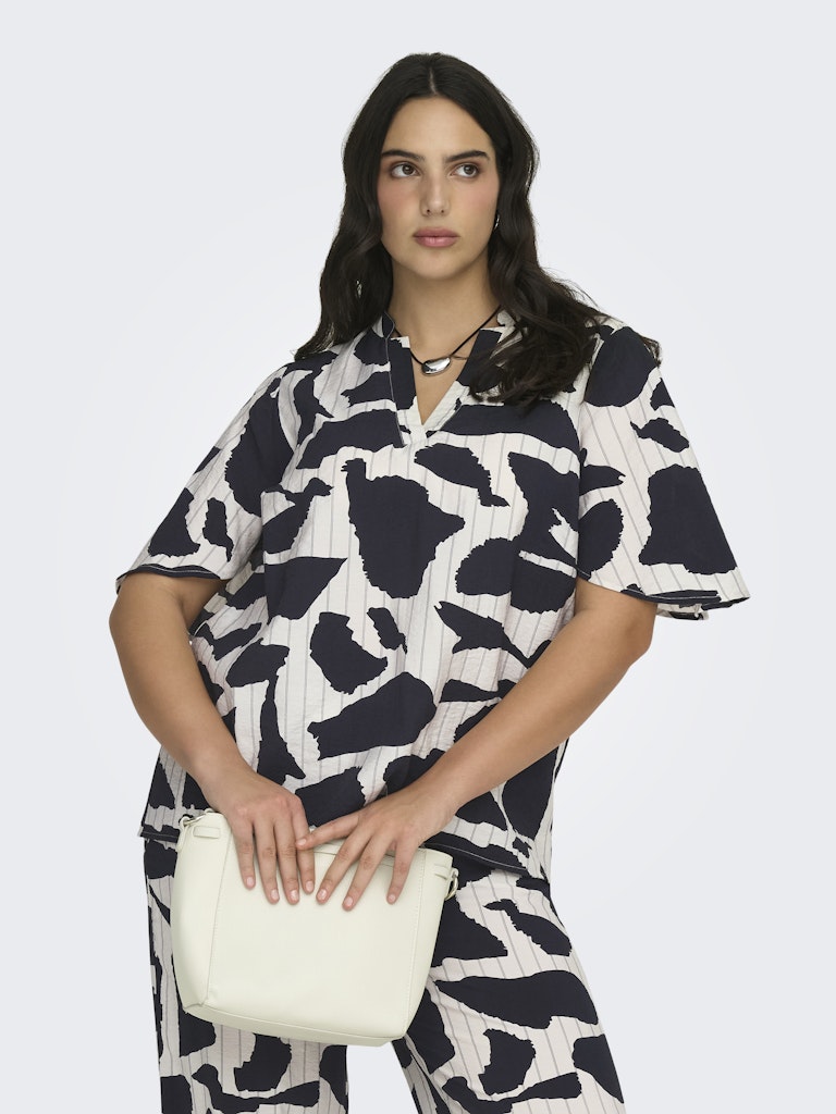 Denne toppen fra ONLY Carmakoma er et perfekt valg for deg som ønsker et moderne og grafisk uttrykk i garderoben. Designet har et iøynefallende mønster som kombinerer store abstrakte former med en lys bakgrunn og fine striper. Dette skaper en visuell dybde som passer utmerket når du vil oppdatere din samling av bluser fra ONLY Carmakoma.
