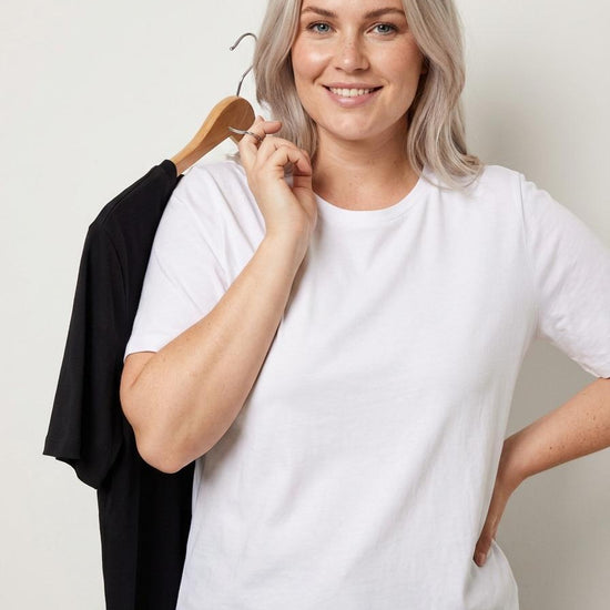 Her får du et uunnværlig sett med to basis t-skjorter fra Only Carmakoma som er et must i enhver garderobe. Settet inneholder både en sort og en hvit modell, laget i en myk bomullskvalitet med korte ermer og rund hals.