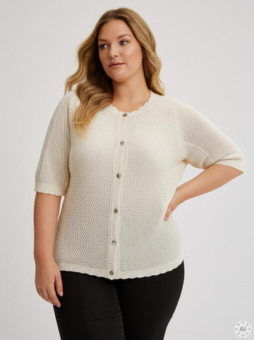 Oppdag den perfekte blandingen av eleganse og komfort med denne flotte strikkede cardiganen fra ONLY CARMAKOMA. Skreddersydd for kurvede kvinner, er denne cardiganen det ideelle valget for å fremheve din feminine silhuett. Med regular fit og 2/4 ermer, passer den perfekt til skole, arbeid og daglige aktiviteter. Den flate strikkestrukturen sikrer en fleksibel og behagelig passform, som enkelt kan matches med dine garderobefavoritter.