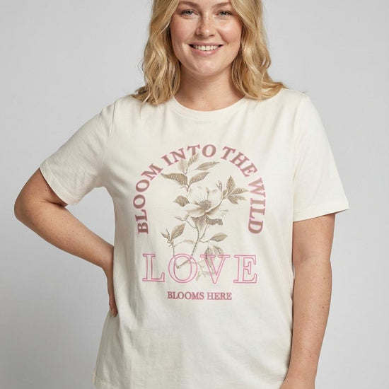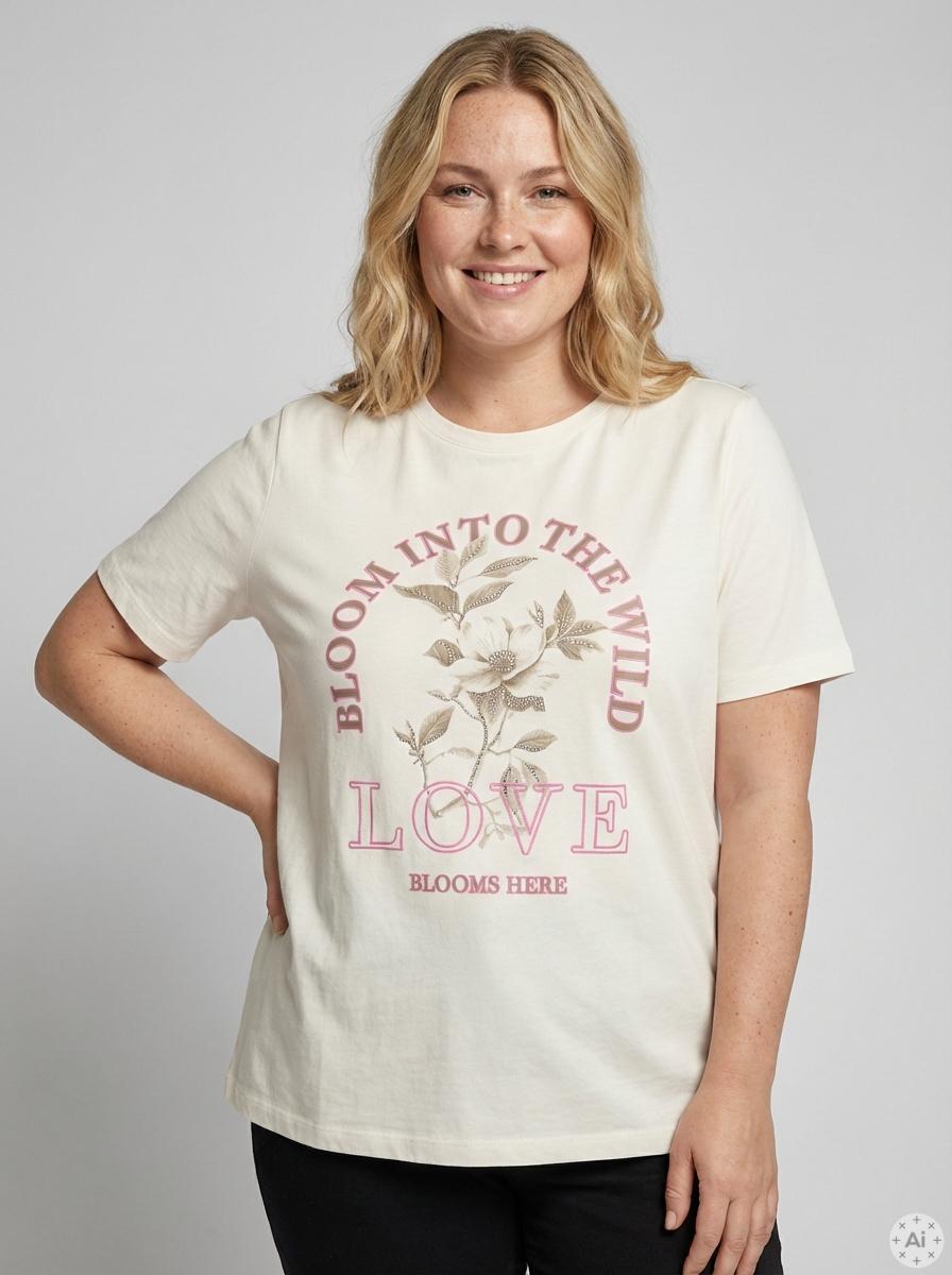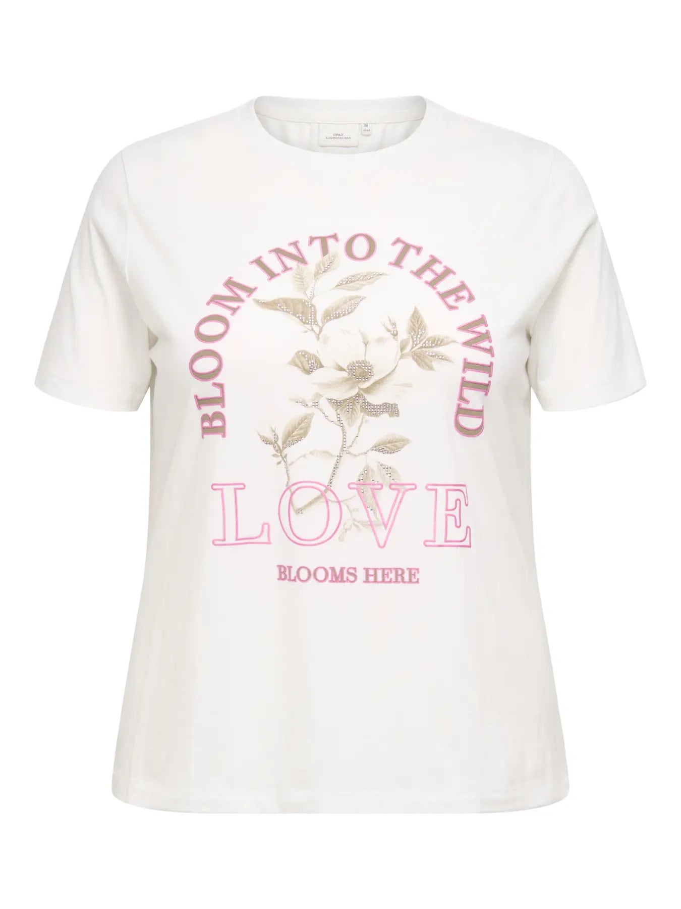 Denne t-skjorten fra Only Carmakoma skiller seg ut med et flott og stort trykk i front. Teksten er kombinert med en metallisk sølveffekt over blomster, og stilen løftes av glitrende stener samt et inspirerende sitat. Finn flere Only Carmakoma t-skjorter i vårt utvalg.