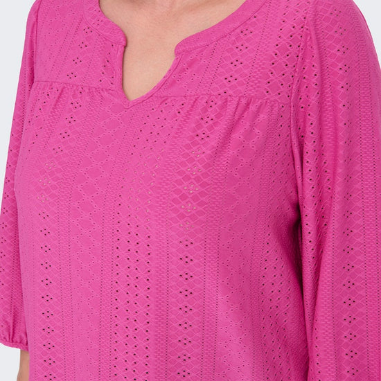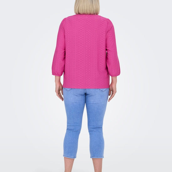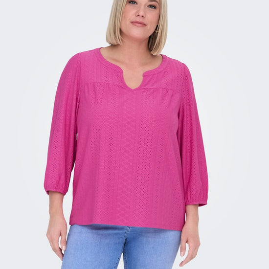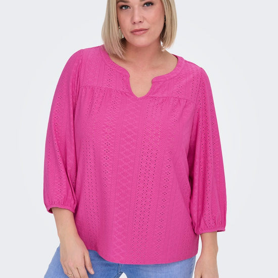 Opplev den perfekte kombinasjonen av stil og komfort med denne vakre toppen fra ONLY CARMAKOMA. Designet med kurvede kropper i tankene, tilbyr denne toppen en regular fit som fremhever din naturlige skjønnhet. Den er laget av en myk blanding av 95% polyester og 5% elastan, noe som sikrer en behagelig passform og lett bevegelse. Toppen har en klassisk rund halsutskjæring og 3/4 lange ermer som gir et moderne preg. Velg mellom tre stilige farger: Fuchsia Fedora, Cloud Dancer og Black, som gir deg muligheten til å matche antrekket ditt til enhver anledning.